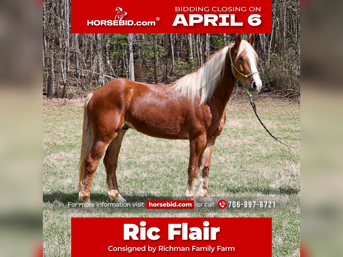 🌟𝑨𝒑𝒓𝒊𝒍 𝐀𝐋𝐋 𝐒𝐓𝐀𝐑 𝐋𝐈𝐍𝐄𝐔𝐏🌟 Happening now thru MONDAY | APRIL 6th - Available EXCLUSIVELY on HorseBid's website! For more details and to register visit: www.Horsebid.com CONSIGNOR CONTACT: Richman Family Farm 706-897-6721 LOCATION: Blairsville, GA BREED: Draftcross REGISTERED: No COLOR: Sorrel HEIGHT: 16.1 AGE: 5 GENDER: Gelding "I'm RIC FLAIR. The stylin' and profilin', limousine ridin', jet flyin', kiss stealin', wheelin' 'n' dealin' son of a gun." If you don't want people looking your way, he's not your horse. Ric is a stunning draft cross gelding, standing at 16.1H. Ric flair is also at a wonderful age of 5yrs old. Ric has as much mane and tail as he does personality. Ric has been rode extensively in the Appalachian mountains. He will cross water, go over logs, and is traffic safe. He has been put through mounted patrol training, and absolutely excelled in that. He can also do arena work too. Ric has an amazing W/T/C. This handsome fella will pick up both leads flawlessly in the arena just like your little QH will. Ric moves very well off of leg pressure. Ric also will side pass with ease, and open and close gates, and even come pick you up, so you don't have to climb on. There isn't much we haven't put him through, and he has never said no. We've rode mostly western, but he has rode english quite a bit as well. Ric is very willing to please his rider and could go in any direction that you want to go. He is the kind you can show on Saturday and trail ride on Sunday. I've had him in a 5 acre field to a 65 acre field. If you can't catch him it's because you have a grizzly bear behind you. He truly is a gentleman in every way. Ric will come UTD on shots, shoes, coggins, and worming. If you have any other question feel free to call me at 706-897-6721.