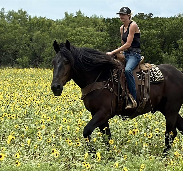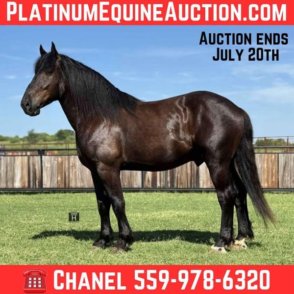 ONLINE AUCTION Place your bids at www.PlatinumEquineAuction.com Starting Bid $3500 Auction ends July 20th 2025 Need a new saddle? Check out White Rock Saddles on our website or Facebook Black Gold is a 16.3 hand jet black Percheron gelding at the prime age of 5 years old. He has a heart made of gold that anyone and everyone will love. Black Gold is broke to drive and ride and excels at both. He is as gentle as they get from ground manners to under saddle. He is the grandma safe, throw your kids on, beer drinking down the trails type of guy. He is solid, steady, only goes as fast as asked for and is not spooky in any way. He goes out alone confidently or will follow a lead horse. His gaits are smooth and enjoyable. You can sit his jog easily. Black Gold neck reins, rides loose reined and moves off leg very well. Great brakes, side passes etc. I’ve ridden Black Gold out on the ranch for hours with no bridle. He is as trustworthy and rock solid as they get. Black Gold is friendly, easy to catch, and enjoys attention and going and doing things. He has a very willing and happy demeanor about him and always has his ears perked. He is quiet to saddle, good with his feet, stands tied and hauls like a gentleman. He respects personal space and stands for mounting. Black Gold is sound and straight/clean legged. FMI call/text Holland Horse Co. Chanel 559-978-6320. We are happy to answer questions, arrange a test ride or help arrange shipping nationwide. ONLINE AUCTION Place your bids at www.PlatinumEquineAuction.com Starting Bid $3500 Auction ends July 20th 2025 Need a new saddle? Check out White Rock Saddles on our website or Facebook