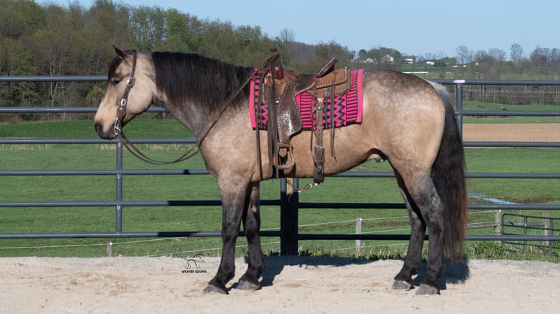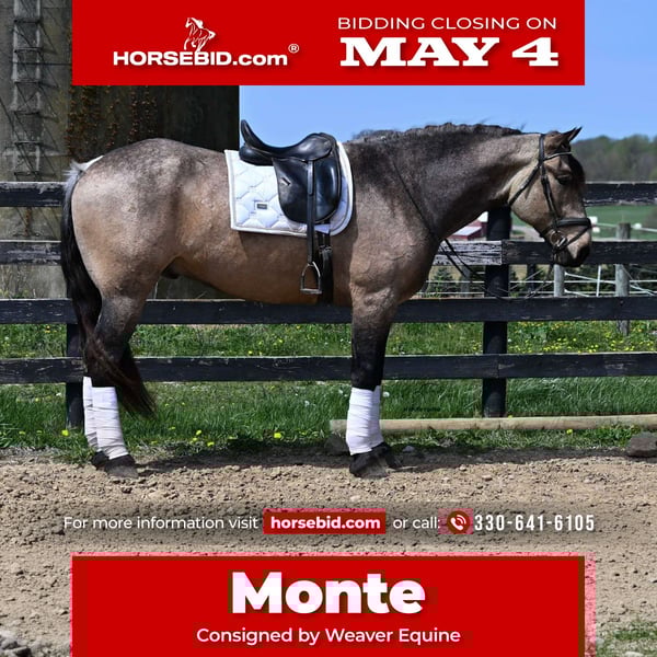 ▪️▫️◾️𝐭𝐡𝐞 𝑴𝒂𝒚 𝐒𝐞𝐥𝐞𝐜𝐭◾️▫️▪️ Happening now thru MONDAY | MAY 4th - Available EXCLUSIVELY on HorseBid's website! For more details and to register visit: www.Horsebid.com CONSIGNOR CONTACT: Weaver Equine 330-641-6105 LOCATION: Fredericksburg, OH BREED: Draft Cross REGISTERED: No COLOR: Buckskin HEIGHT: 16.2 AGE: 5 GENDER: Gelding Monte is a gorgeous buckskin colored draft cross gelding. He is 5 years old and a dream to ride. He is great out on the trails, in the arena, and on the roadways! He will look a nice circle in the arena. He will pick up both leads correctly. He stops and backs up nicely when asked. Neck reins and side passes. He will happily stand at a mounting block. Easily open and close gates from on top. He does not mind a tarp or flag. He is not easily phased and so much fun to ride! Monte is a pro on the trails as well! He will happily plod along to your heart's desire. He conquers the hills with ease! He crosses creeks and steps over logs without a fuss. Monte is super sensible and great all around! He is traffic safe. He stands well. He is easy to handle on the ground as well. He will stand to tack and groom. Does not mind being cross-tied but will ground tide as well. He trailer loads easily. He does well with other horses and animals. Monte is currently searching for his new Rider and is ready to go in any direction you point him! Reach out today at 330-641-6105 for further details! We look forward to hearing from you!