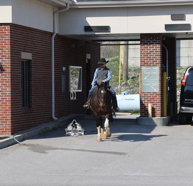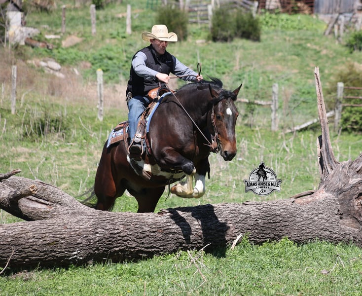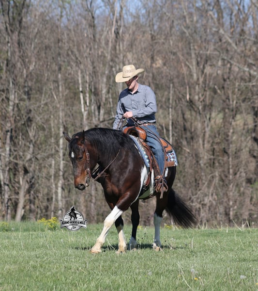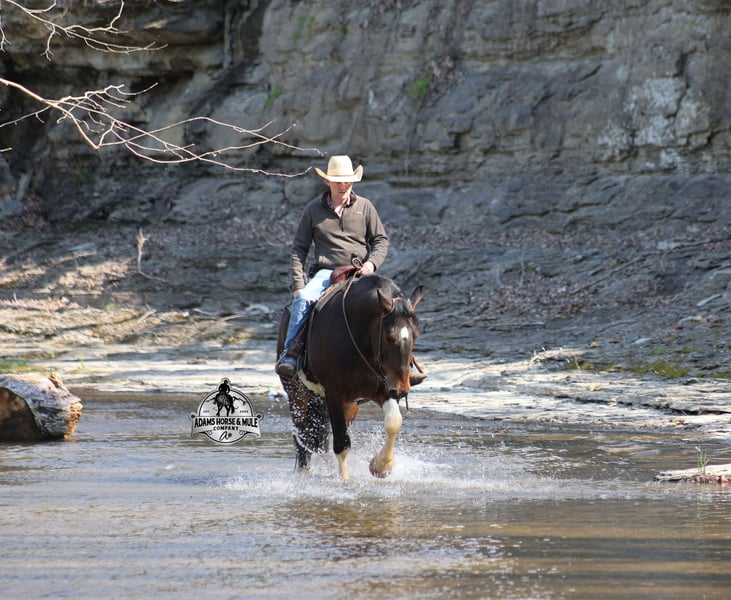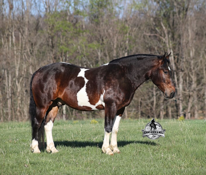 Go to visit our website for more pics and video link at www.AdamsHorseAndMuleCo.com AHAMC has been in the horse business and sold horses over the internet since 2005. We have a long track record of success with hundreds of happy customers. We work hard to match riders with the correct horses and specialize in beginner safe, family friendly horses that have been used and checked out by our family! We can set up transportation anywhere in the US and look forward to working with you. Cherokee looks like something straight out of a fairy tale with his muscular build, beautiful color pattern and he is even better in person! This Draftcross gelding is a beautiful bay tobiano, that is weighing in around 1450lbs and stands around 15.3H! He is 5 years old and is very well built. Cherokee has been through out natural horsemanship program, knows how to lay down on command, has the friendliest personality, loves attention and is everyone’s best friend. He has done it all… From riding around town and through the bank drive-thru, Cherokee will go anywhere that he is asked. He has been ridden around the ranch, checked cows and rode fences. He is a slow and laid back type of horse that will just ease along down the trails with no hesitation. Cherokee is a horse that the whole family will love and one that will help build everyone’s confidence levels! He has been camping in several states and has been ridden by all ages of beginners and kids as well. When out on the ranch or going down the trails he will cross creeks, ditches, logs and navigate rough rocky areas. He has been exposed to all kinds of wildlife such as deer or turkey. He has been worked under harness to all types of farm equipment and is traffic safe whether that be trucks or cars. Cherokee has a nice jog, his lope is slow, collected and very easy to set as he lopes nice circles! He has been ridden English and goes over the jumps with ease. Cherokee is the total package and he will take care of you! Feel free to call Eric 606-308-2461 with any questions!