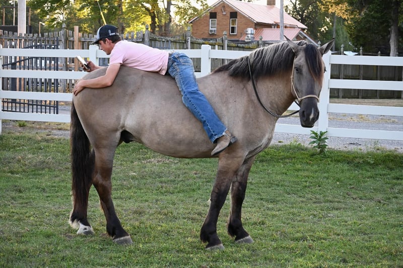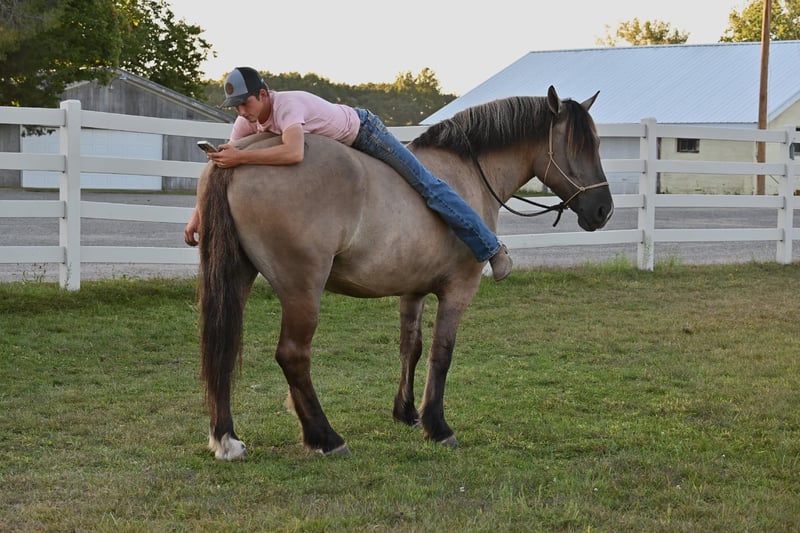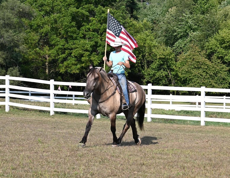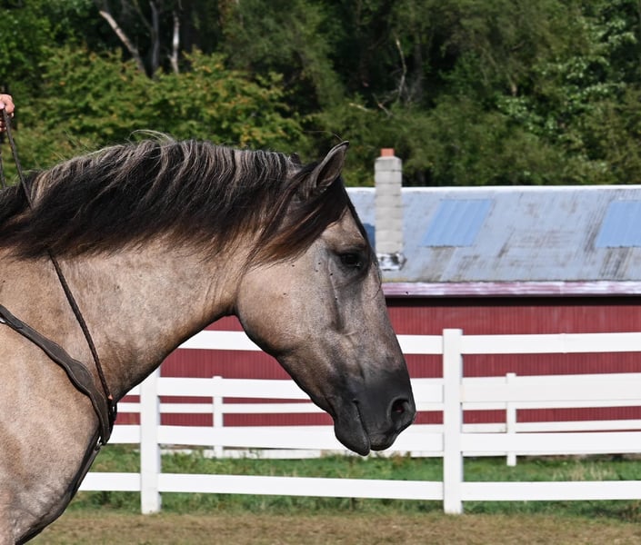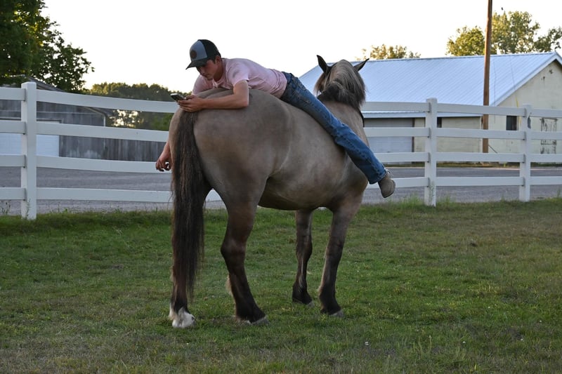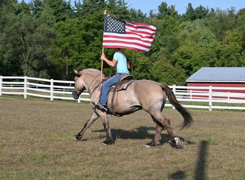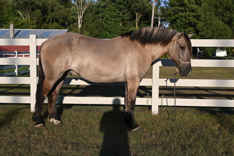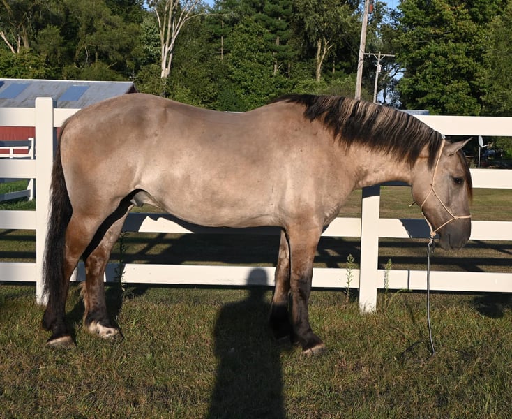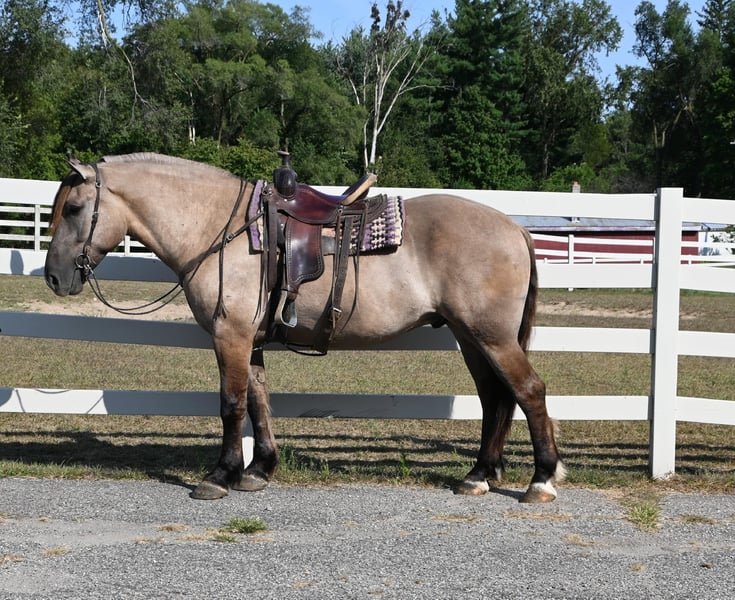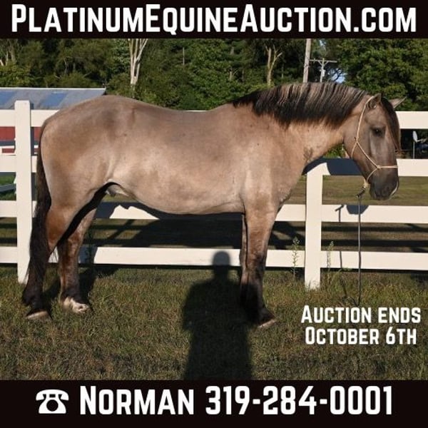 ONLINE AUCTION Place your bids at www.PlatinumEquineAuction.com Starting Bid $3500 Auction ends October 6th, 2024 Need a new saddle? Check out White Rock Saddles on our website or Facebook! Meet Teddy! Teddy is a 16.1H, Grulla Draftcross Gelding who is a 2020 model. He is a total dream horse that will catch anyone’s eye anywhere that you take him! He is one of the best horses that we have ever had in our barn. Teddy does it all… He has been ridden english, western, bareback and is broke to drive single or double. He is an absolute pet on the ground and loves attention. He’s always the first one to meet you at the gate to greet you. He is easy to catch saddle, bridal brush, shoe and bathe. He’s been everywhere that you can think of been on trails through town down busy highways, he will go across ditches, through water over logs, and will do it all slow and easy. Teddy will walk, trot and canter the very best. He will take his leads knows leg pressure, he neckreins and also rides bridleless. He gets along great with other horses in the pasture. He’s an absolute perfect pic for the entire family to enjoy. He is one of the kids can ride and any adult can ride, the bottom line is he safe! He is up-to-date on his Coggins, worming and rabies vaccination. For more information feel free to call Norman with silver star stables 319-284-0001. Located in Shipshewana, IN. I will be sure to answer any of your questions and look forward to speaking with you. ONLINE AUCTION Place your bids at www.PlatinumEquineAuction.com Starting Bid $3500 Auction ends October 6th, 2024 Need a new saddle? Check out White Rock Saddles on our website or Facebook!