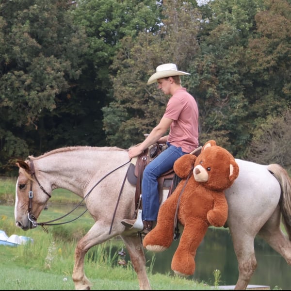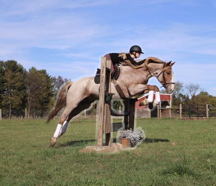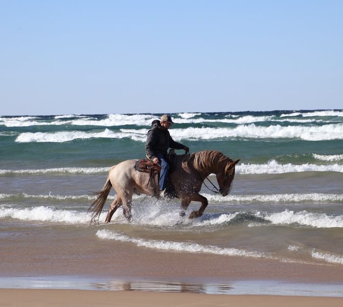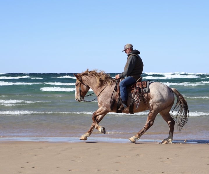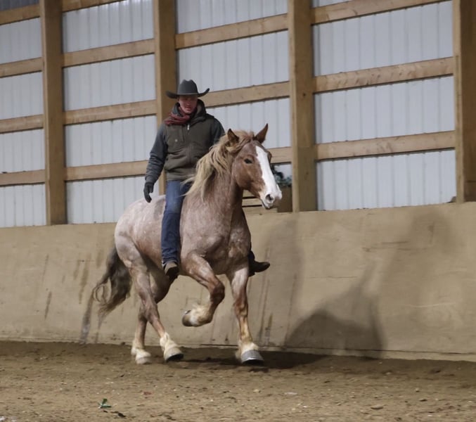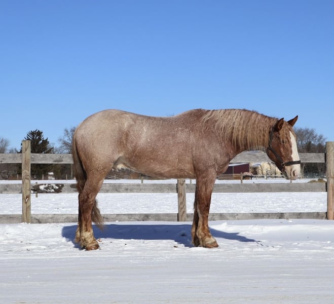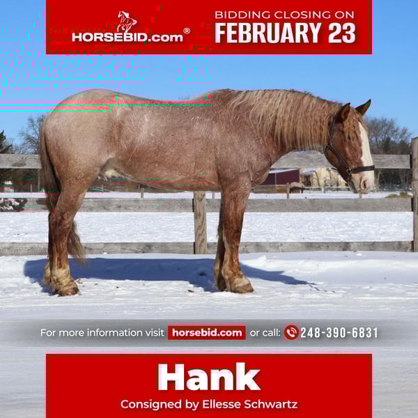 💎 𝐓𝐇𝐄 𝓓𝓲𝓪𝓶𝓸𝓷𝓭 𝐒𝐇𝐎𝐖𝐂𝐀𝐒𝐄 💎 Happening now thru MONDAY | FEBRUARY 23rd - Available EXCLUSIVELY on HorseBid's website! For more details and to register visit: www.Horsebid.com CONSIGNOR CONTACT: Elleese Schwartz 248, 390-6831 LOCATION: Howell, MI BREED: Brabant Quarter Horse Cross REGISTERED: No COLOR: Red roan HEIGHT: 15.3 AGE: 7 GENDER: Gelding We have been holding on to this secret and are finally ready to offer him for sale! His name is Hank and he is the life of the party and the guy everybody wants to know! Not only will he turns heads wherever he goes, he has the most charming demeanor. He is a stunning red roan who shines like a new penny when the sun hits his coat! Hank is a 7 year-old, 15.3hh Brabrant Quarter Horse cross gelding. He comes equipped with all the bells and whistles from all the fancy buttons in the arena to all of the liberty training. He will sit and lay down with the most subtle of cues, you will look like a horse whisperer working with him. He knows how to side pass, pivot back up, work on and off seat and leg pressure, pick you up at the mounting blocks and much more. He is a powerhouse of strength, versatility, and athleticism. For a horse of his size, Hank moves with incredible grace and fluidity, making him not only a rideable mount but also an athlete in his own right. Whether you are riding Western, English, or bareback, Hank delivers an exceptional experience, seamlessly transitioning between disciplines with ease. What truly makes Hank stand out is his “been there, done that” attitude. He is the definition of a bombproof horse—absolutely safe in any environment. From water front gallops across Lake Michigans picturesque shorelines to a ride across the sleeping bear sand dunes. Hank has seen it all. Hank has been ridden on state roads, in the woods, open fields, and has even gone on a shopping trip to our local farm store! His beautiful roan color captures everyone’s attention! One glance into his big brown eyes will steal your heart. Out on the trails, Hanks calm, and steady nature shines. Water crossings, tarps, bridges and other common and uncommon obstacles do not phase him in the slightest. His even keel temperament makes him an ideal horse for beginners who need a forgiving partner, while his experience and smooth gaits make him just as enjoyable for advanced riders. Hank is the rare horse that adapts to his rider’s needs, making him a perfect fit for anyone from novice to seasoned equestrians. And speaking of smoothness, Hanks three gaits are simply unbeatable. His walk, trot, and canter are incredibly fluid and comfortable, making him perfect for all-day rides without leaving you sore. Whether you are working in the arena or exploring the trails, Hank athleticism and stamina ensure he will keep going strong, mile after mile. In short, Hank is the full package: strikingly beautiful, strong, athletic, and most importantly, safe. If you are looking for a versatile horse Hank is the perfect partner. Hank is also well broke to drive, he is traffic safe and no stranger to busy roads. Any one who can hold the lines can drive him! He is also a blast to Jump, he holds a great canter to the fences and will jump from any distance. You do not need to be accurate to navigate him around a course, in or out. He even swaps his leads! In the hunter ring or cross country he's brave and dependable. He is ready to take on anything, whether you are a beginner looking for safety or an experienced rider seeking a smooth, dependable horse for long adventures. Hank lives in Howell, MI 48855. Please call or text Ellesse Schwartz at 248-390-6831) for more information.