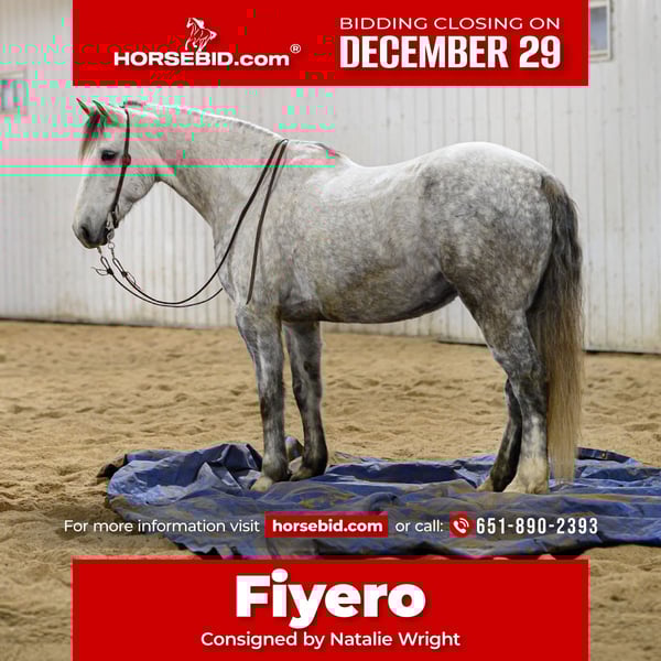 ⚜️ 𝓗𝓮𝓻𝓲𝓽𝓪𝓰𝓮 𝐖𝐢𝐧𝐭𝐞𝐫 𝓒𝓵𝓪𝓼𝓼𝓲𝓬⚜️ Happening now thru MONDAY | DECEMBER 29th - Available EXCLUSIVELY on HorseBid's website! For more details and to register visit: www.Horsebid.com CONSIGNOR CONTACT: Natalie Wright 651-890-2393 LOCATION: Hastings, MN BREED: Draft Cross REGISTERED: No REGISTERED NAME: Fiyero COLOR: Grey HEIGHT: 17.1 AGE: 6 GENDER: Gelding If a horse could walk off a movie set and into your barn—Fiyero is that horse. Fiyero — 6-year-old dapple grey draft-cross gelding, 17.1 hh. Big, beautiful, and impossibly polite, he’s the kind of horse everyone falls for the first ride. A gentle old soul with a brain to match: quick to learn, kind and ridiculously willing — we’ve run out of new things to teach him because he tries everything with %110 He rides English and Western with effortless transitions; great in the arena, relaxed on the trail, excellent for lessons. Sits quietly on the ground, loads and ground ties. He has been reliable for riders of many levels (confident beginner through experienced). He’s a Barn favorite — dependable, flashy, and unforgettable. Visits Welcome!