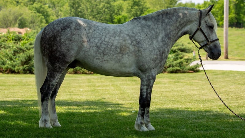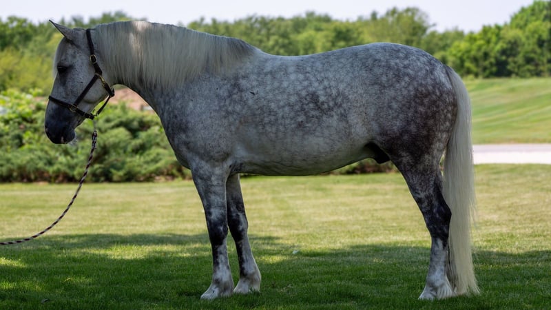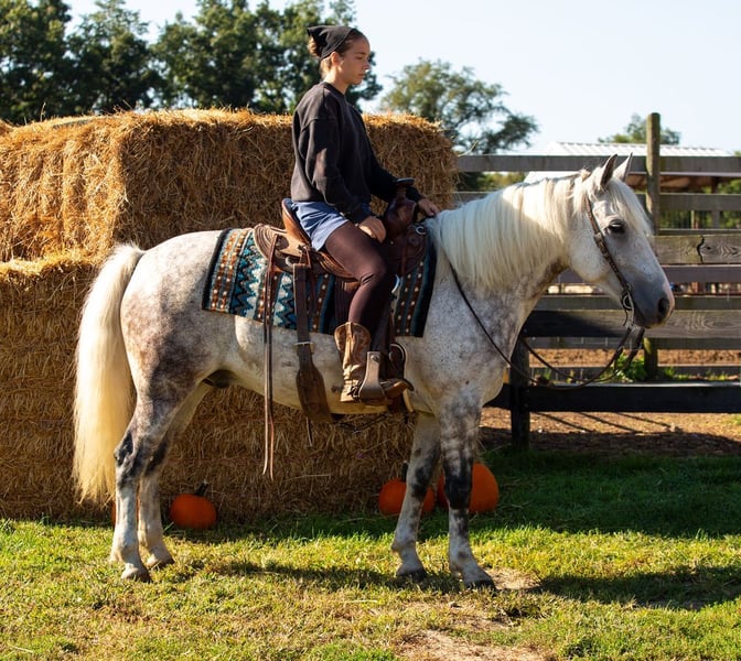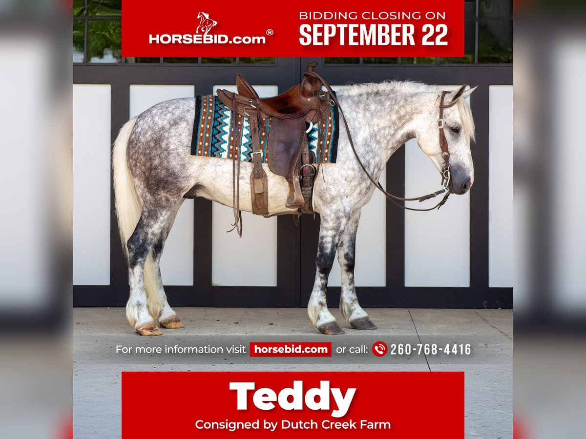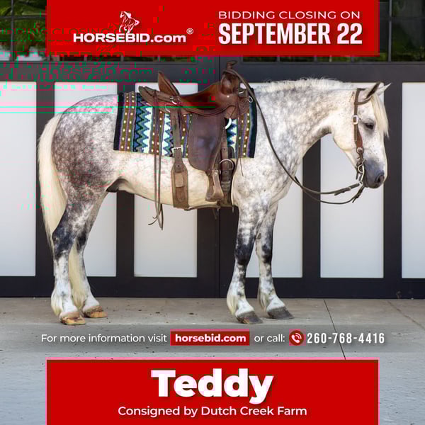 🍁𝒕𝒉𝒆 𝐅𝐀𝐋𝐋 𝑺𝒑𝒆𝒄𝒕𝒂𝒄𝒖𝒍𝒂𝒓🍁 Happening now thru MONDAY | SEPTEMBER 22nd - Available EXCLUSIVELY on HorseBid's website! For more details and to register visit: www.Horsebid.com CONSIGNOR CONTACT: Dutch Creek Farm 260-768-4416 LOCATION: Shipshewana, IN BREED: Draft Pony Cross REGISTERED: No COLOR: Gray HEIGHT: 14 AGE: 7 GENDER: Gelding Teddy, 2018 Dapple Gray Percheron Pony Cross Gelding -Owned by Loren Jones Trained and presented by Dutch Creek Farm, Shipshewana, Indiana For more information, call (no text) 260-768-4416, Ext 2 -From the trainer: Check out this cute little package! Teddy is very well broke to drive. He has tons of experience. He was a faithful horse for an older lady for most of his life, where he was accustomed to pulling a cart wherever she wanted to go. He has been to town multiple times and is very safe with all the traffic. Teddy is also well broke to ride and has spent the last year with our family. Teddy will pick up both leads and lope a cute circle. He will cross logs and water. Teddy has been ridden by all ages. Our kids handled him quite frequently. Whether that was taking him for a little ride or just bringing him out to brush and lead around. Teddy has also been ridden in English tack. Wouldn't he look cute in a group of fox hunters? We feel Teddy will be safe for the greenest of riders. He loads great in a trailer and stands for the farrier. He sells traffic safe and sound.