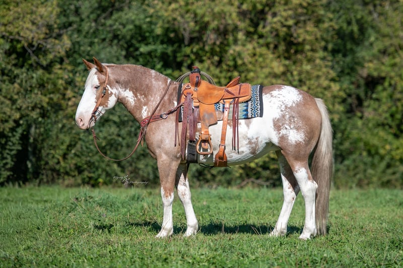 🎲𝓽𝓱𝓮 𝐑𝐈𝐃𝐄𝐑'𝐒 𝓒𝓱𝓸𝓲𝓬𝓮🎲 Happening now thru MONDAY | NOVEMBER 17th - Available EXCLUSIVELY on HorseBid's website! For more details and to register visit: www.Horsebid.com CONSIGNOR CONTACT: Rafter D Mules & Codie Brown 651-303-7056 and 719-691-8646 LOCATION: Hastings, MN BREED: Draft Cross REGISTERED: No COLOR: Red Roan Sabino HEIGHT: 16 AGE: 10 GENDER: Mare Uncommon in every way and outstanding in the very least; all while being as handy and safe as they come. Two Tone is a well-rounded mare that has a variety of jobs on her resume. She has been in our program for several years, as she was owned and trained by Codie. Many of the photos you will see were taken throughout the years of owning her. Two Tone was trained and used in the feed yards; she can rope and hold anything you are brave enough to catch. She has been used to pack in a pack string and has also led pack strings through the switchbacks in and out of camp. She is broke to hobble and has been on many overnight camps. Two Tone has been trail ridden through the wide-open country and the mountains. As if that is not an extensive enough resume... She has also been used as a pickup horse in rodeos where she picked up cowboys off of broncs and shagged bulls. She has had the privilege of carrying our nations flag at the rodeo during the national anthem in front of a packed audience. Two Tone has been ridden by cowboys and cowgirls, by riders who are young and old, from the least experienced to the most. This mare has been a true pleasure to own, and we are excited to see her give the same great experience to someone else. Her disposition is phenomenal, making it incredibly easy to say that she is as pretty on the inside as she is on the outside. One glance at her is all it takes to know that this mare is capable of turning every head! Two Tone hasn't just been trained; she has had years of experience where she has been ridden miles throughout the nation. Though she rides great inside, she has all the experience and confidence to ride outside doing any job or casually trail riding. You can leave her off for months and have no concern about cinching her up and riding off. She is going to give you the same great ride every time with complete consistency. No matter who you put in the saddle, Two Tone is going to take care of them, and go any direction she is pointed. She will side pass across an arena, correctly take her leads on cue while loping pretty circles, has an impressive extended trot, a big stop and a nice turn around for a mare of her size. She has athletic ability that is much more comparable to a quarter horse than a draft horse. She is an easy keeper, loads and hauls well, stands for the farrier, and is easy to catch. Two Tone gets along well whether she is stalled or turned out. She pastures well with other mares or geldings and is not marish whatsoever. She is easy going no matter what you ask of her. Whether she is getting a bath, or riding through the creek, she loves water! She has even raised a baby that was just as good looking as she is, with all of the jaw dropping color. There really isn't anything that this mare is not capable of. If you have questions about Two Tone or would like to meet her prior to the auction ending please contact Dillon at 651-303-7056 or Codie at 719-691-8646. We want to make sure that she gets the best home, so please do not hesitate to reach out! She is truly the mare of a lifetime, and whoever gets her, will love her just as much as we have.