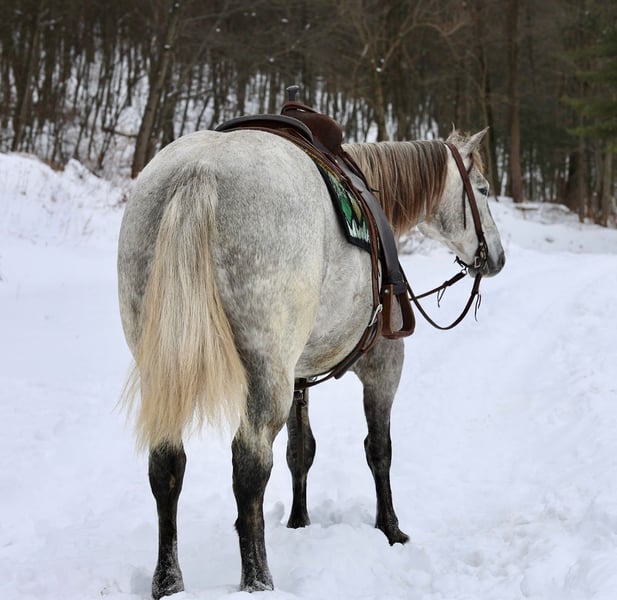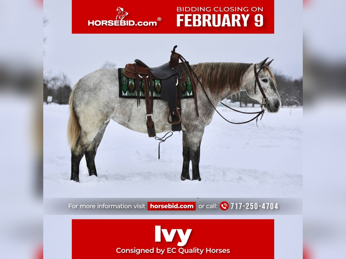 ❤️🔥𝑩𝒆 𝑴𝒊𝒏𝒆 𝐒𝐄𝐋𝐄𝐂𝐓❤️🔥 Happening now thru MONDAY | FEBRUARY 9th - Available EXCLUSIVELY on HorseBid's website! For more details and to register visit: www.Horsebid.com CONSIGNOR CONTACT: EC Quality Horses 717-250-4704 LOCATION: Beaver Springs, PA BREED: Crossbred REGISTERED: No REGISTERED NAME: Ivy COLOR: Gray HEIGHT: 15 AGE: 4 GENDER: Mare Introducing Ivy! She’s the kind that’s hard to find! Safe, Reliable, and Trustworthy! She’s quality you don’t have to explain! Ivy is a 4yr old Gray Draft Cross Mare. She stands approximately 15hh tall built to last a lifetime. Ivy is super gentle with an in your pocket personality. She has all the looks and willing attitude to please! We have ridden Ivy both english and western. She rides in or out of the arena. Ivy is soft in the bridle or ride her bridleless! She will walk, trot, and canter. She picks up her both of her leads and transitions nicely into her gaits. Ivy will spin and slide stop! Ivy has been over some cross rails and small jumps. We have also had Ivy out on the trails. She will go out alone or with others. Ivy will go wherever you point her. She crosses through water and goes over logs. Ivy has also been around excessive amounts of cattle. Ivy stands to be groomed, bathed, saddled, unsaddled, mounted, and to be dismounted from. She’s the kind of horse you wouldn’t mind having in your barn! She’s as pretty as one comes with all the ride! Ivy is 100 % sound. A PPE is welcome at the buyers expense. She will come with a current coggins and health certificate after purchase! For further information regarding Ivy please don’t hesitate to reach out to Carley @ 717-250-4704