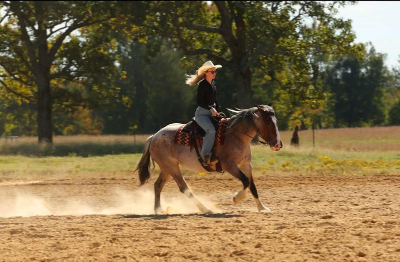 ⚜️𝐓𝐇𝐄 𝐅𝐀𝐋𝐋 𝐇𝐄𝐑𝐈𝐓𝐀𝐆𝐄 𝐂𝐋𝐀𝐒𝐒𝐈𝐂⚜️ Happening now thru MONDAY | NOVEMBER 3rd - Available EXCLUSIVELY on HorseBid's website! For more details and to register visit: www.Horsebid.com CONSIGNOR CONTACT: Lacey Wilf 501-940-8704 LOCATION: Quitman AR BREED: Brabant cross REGISTERED: No COLOR: Bay Roan HEIGHT: 15 AGE: 4 GENDER: Mare Elsa is a 4-year-old draft cross mare standing a solid 15 hands and weighing an impressive 1,300 pounds. Substantial and beautifully made, she has the kind of bone, balance, and presence that immediately draw the eye—broad through the chest, deep in the heartgirth, and muscled from hip to shoulder. Her calm confidence and composed nature make her an easy one to appreciate both in harness and under saddle. Broke to drive the very best, Elsa harnesses like a seasoned pro—standing patiently to hitch, staying light and responsive to the lines, and working with steady rhythm and focus whether she’s on the road or in the field. She’s strong, forward when asked, and always willing, making her a dependable partner for any driving job. Out on the trail, Elsa truly shines. She’s confident and surefooted through all kinds of terrain—crossing water, bridges, brush, and uneven ground without hesitation. She handles steep hills and open country with balance and ease, staying calm around wildlife, traffic, and farm machinery. No matter where you take her, she keeps the same steady mind and willing attitude, making her a joy to ride in any setting. In the arena, Elsa picks up both leads easily, carries herself soft in the bridle, and has a naturally balanced handle that makes her smooth and enjoyable to ride. She’s responsive without being reactive and comfortable in both arena work and outside miles. On the ground, she’s the kind that makes daily handling simple and stress-free. Elsa is easy to catch, patient to tack, bathe, and shoe, loads and hauls quietly, and stands tied without fuss. Every interaction with her reflects her steady nature and good manners. With her impressive build, elegant way of going, and steady, level mind, Elsa represents the very best of a true draft cross—strong, versatile, and beautifully composed in every sense of the word.