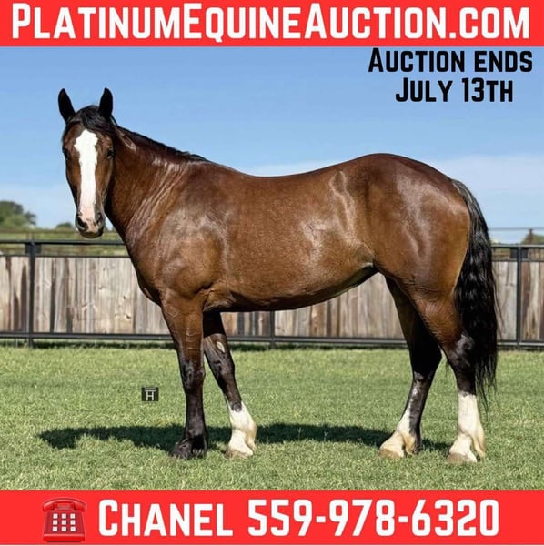 ONLINE AUCTION Place your bids at www.PlatinumEquineAuction.com Starting Bid $3500 Auction ends July 13th 2025 Need a new saddle? Check out White Rock Saddles on our website or Facebook! Hazel is a thick, well made, chromed up 2020 Draft Cross mare standing 15.2 hands. She is an extremely athletic, forward moving type. She has so much potential as a fox hunter. She can jump 2’6” with ease and has plenty of scope for more. She is bold and confident with a lot of momentum. Hazel has absolutely no buck, no matter how much time off. She is responsive to cues and will lope off with a simple kiss. Hazel is broke to drive as well and has been used on the farm for daily chores. She’s been ridden down the highways, out at the ranch, and will go through and over absolutely anything from water to tarps to ditches etc. She pastures well with others or stalls quietly. She is good with her feet. Friendly mare that enjoys attention. UTD. Sound, straight, and clean legged. FMI call/text Chanel with Holland Horse Company 559-978-6320. We are happy to answer questions and help arrange shipping nationwide from Jacksboro, TX. ONLINE AUCTION Place your bids at www.PlatinumEquineAuction.com Starting Bid $3500 Auction ends July 13th 2025 Need a new saddle? Check out White Rock Saddles on our website or Facebook!