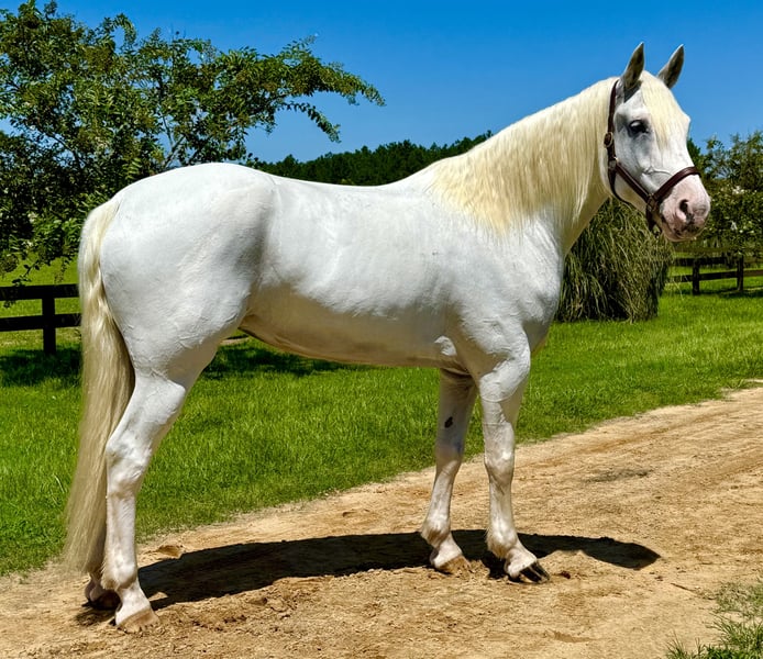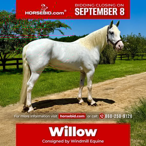 ♦️ 𝐭𝐡𝐞 𝐒𝐞𝐩𝐭𝐞𝐦𝐛𝐞𝐫 𝑺𝒆𝒍𝒆𝒄𝒕 ♦️ Happening now thru MONDAY | SEPTEMBER 8th - Available EXCLUSIVELY on HorseBid's website! For more details and to register visit: www.Horsebid.com CONSIGNOR CONTACT: Windmill Equine 860-250-9120 LOCATION: Johnston, SC BREED: Draft Cross REGISTERED: No COLOR: Grey HEIGHT: 16 AGE: 6 GENDER: Mare Willow is a 6yo 16h Draft Cross mare. Talk about a real life unicorn! This girl is gorgeous in every sense of the word. In the barn she is great to be around. She stands all day for grooming and to be loved on. In the ring she has three easy and very comfortable gaits. She rides english and western. She jumps around a course and her changes are started. She jumps all of the scary fillers and takes a joke nicely. She rides around with contact or on a nice loose rein. She is steady, comfortable and quiet. We were told she drives, however we do not have a harness or cart to try that with. Out of the ring she is brave, willing and honest. She rides out alone or in a group. She has no problem leading the group or taking up the rear. She will walk along on a loose rein the whole time. She has hunter paced nd hilltopped as well and out there she is also fine with leading or following. She goes over the logs and cross country jumps as well as going through the water too. She is great in turnout with or without pasture mates and she can live in a mixed herd and she is very easy to catch. She requires no maintenance and has no vices. She has great feet and is clean legged with no blemishes. This girl has the looks and the brains, which having both of those is a rare find. Don't miss out on this beautiful gem of a mare. She is the whole package.