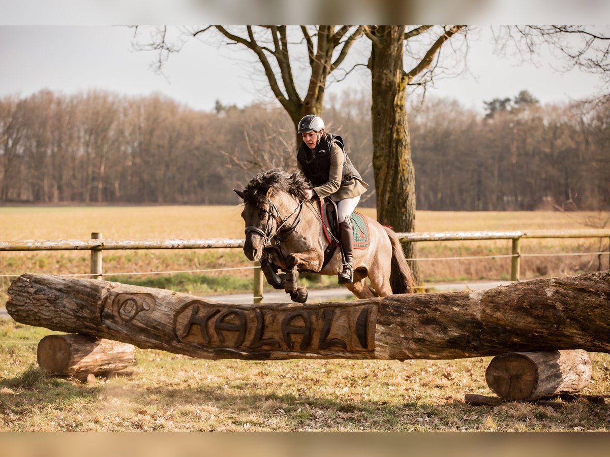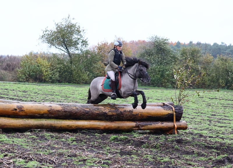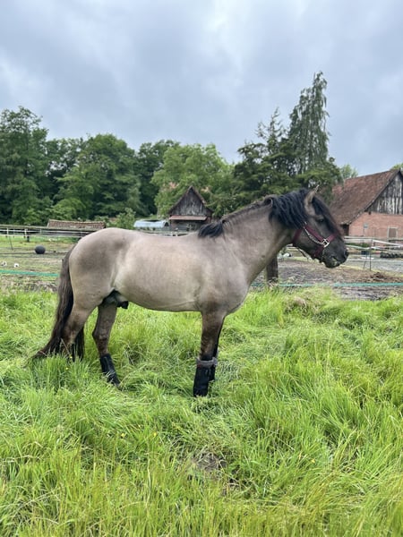 Elegant Dülmener stallion, born in 2016. Standing at 138 cm, he is perfectly suited for the ambitious leisure rider or young horse rider. The stallion is well-trained and demonstrates an extremely reliable and friendly demeanor both in handling and under saddle. His robust conformation and balanced temperament make him an ideal partner for hunting as well as eventing; he is also competition-proven and performed excellently in the Watt. A true natural talent, distinguished by his excellent pedigree and strong character. If interested, I look forward to hearing from you. He moves confidently and reliably in the jumping field. Listed in the Main Studbook, he has sired three foals so far from natural cover. His stallion manners are naturally present but manageable. Upon request, he can also be rehomed as a gelding. He will only be sold if everything fits.