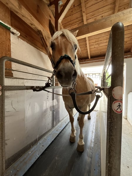 **Verkaufsanzeige: Edelbluthaflinger Wallach** Zum Verkauf steht ein wunderschöner Edelbluthaflinger Wallach aus dem Geburtsjahr 2010. Mit seinem ansprechenden Fuchs-Fell und einem Stockmaß von 145 cm ist er nicht nur ein echter Blickfang, sondern auch ein treuer Begleiter für unvergessliche Freizeitstunden. Dieser charmante Wallach eignet sich hervorragend für Freizeitreiter, die ein zuverlässiges und freundliches Pferd suchen. Er zeichnet sich durch sein ausgeglichenes Temperament aus . Ob beim Ausreiten in der Natur oder bei entspannten Bodenarbeitseinheiten ist er bereit, neue Abenteuer zu erleben. Der Edelbluthaflinger ist gut geritten und hat bereits Erfahrung in der Freizeitreiterei gesammelt. Er ist brav im Umgang, gut händelbar und zeigt sich auch in neuen Situationen gelassen. Wenn Sie auf der Suche nach einem liebevollen, gemütlichen und zuverlässigen Partner für die Freizeit sind, dann ist dieser Wallach genau das Richtige für Sie! Ich habe selbst auf ihm reiten gelernt und ich hätte mir kein netteres, liebevolleres und verständnisvolleres Pferd vorstellen können, um reiten zu lernen und eine tolle Zeit zu haben . Er ist sehr offen und liebevoll zu Menschen und besonders bei Kindern versteht er es, sich angemessen und freundlich zu verhalten. Sein Manko ist allerdings, dass er Enzyme am Kopf und Zwischen den Beinen hat. Diese sind nicht der Verkaufsgrund und Sie stören beim Reiten auch nicht sehr, da sie nicht in Sattellage o.ä. Sind. Zusammenfassend kann ich sagen, dass Gogo nicht das Pferd für Große Lektionen ist jedoch Spaß an Bewegung hat und ein Super Pferd zum lernen ist oder einfach zum gemütlichen gemeinsamen Zeit vertreiben. Bei Interesse oder weiteren Fragen stehe ich Ihnen gerne zur Verfügung. Besuchen Sie uns und überzeugen Sie sich selbst von diesem tollen Pferd!