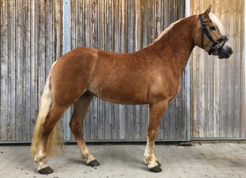 Dieser bildschöne, bewegungsstarker, Anfang März geborene Edelbluthaflingerwallach (ox 9,9%) ist für alles offen. Er hatte 2 schöne Alm Jahre in einer Junghengst Erde und ist mit 2,5 Jahren gelegt worden. Zähne sind kontrolliert und Wolfszähne entfernt. Er ist professionell angeritten und hat eine PSSM1 1 freie Abstammung. Die Messbescheinigung (4 jährig) wurde am 18. 03.2026 mit 142 cm im Pass eingetragen. Tetanus, Influenza und Herpes geimpft. Sein Vater ist der Elitehengst Bundesprämienhengst Schampus. Reservesieger der Körnung 2016 und der Hengstleistungsprüfungsieger 2018 mit der Endnote 8,42 Interieur 8,83 Reiten 8,18 Fahren 8,55. Sein Vollbruder ist der springbetonter Bundesprämiensiegerhengst Secco 2023 in Münster. 2020 wurde er in München gekört und 2022 ging er in Moritzburg als Sieger der Edelbluthaflinger mit einer Endnote von 8,56 hervor. Interieur 8,61 Reiten 8,42 Fahren 8,80. Die Mutter ist die Leistungsprüfungsiegerin 2016 auf Station in München mit 8,03. Der Mutter Vater ist kein Geringerer als der Elitehengst, fahrbetonter Bundesprämiensiegerhengst DSP Nakuri.