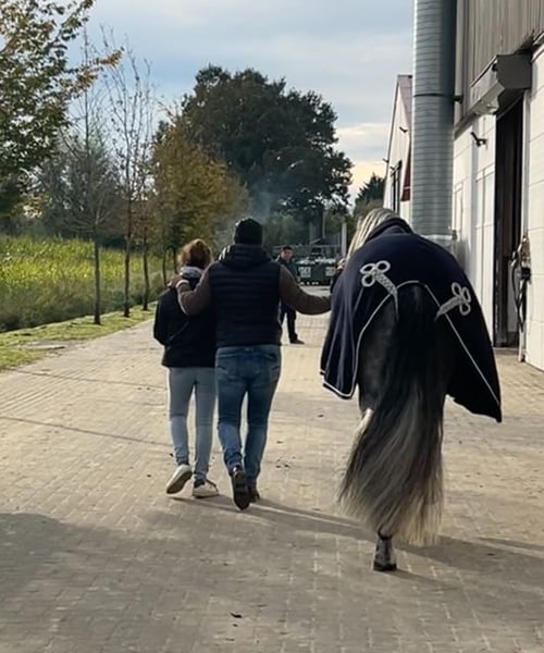 Espabilado de Centurion (2019), 1,69 m Mit seinem einzigartigen Stammbaum hat er die allerbeste Blutlinie, sowohl mütterlicher- als auch väterlicherseits. Sohn von 'Kabileño VIII' und 'Fer Bago' Er wurde 2019 geboren und ist somit noch voll in der Entwicklung. Jetzt beeindruckt er bereits in Bezug auf Bau und Größe. Das verspricht viel für seine Zukunft! Wir freuen uns schon darauf! Er hat sich bereits sofort bei seinem ersten Wettkampf, an dem er 2023 teilnahm, bewiesen. Bei der CCE2023 des ANCCE Belgica erreichte er in Sektion 8 (4-jährige Hengste) den 1. Platz für 'beste Bewegungen' und insgesamt eine Silbermedaille. Er erzielte insgesamt 79,771 Punkte (62,063 Morph, 22 Bewegungen, 17,708 Funktion). Farbe: Grau - Genetischer Farbcode GgAaEeCCNN