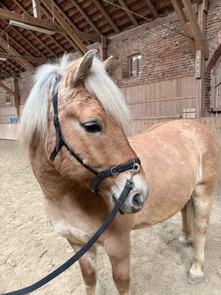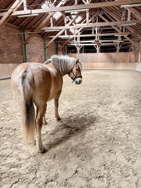 Pummel wurde uns als Anfänger geeignetes Kinderpony verkauft. Leider eignet er sich momentan nicht für Kinder und braucht eine konsequente liebevolle Hand. Es gibt Situationen, in denen er unsicher wird und eine klare Führung braucht. Ihn zeichnet sein ruhiges und freundliches Wesen aus. Er ist brav im Umgang, kein Beißen oder Schlagen und lernt sehr schnell. Er reagiert gut auf Gewichts- und Schenkelhilfen und geht leicht am Zügel. Aufgrund seiner stabilen Statur deckt er auch größere Reiter gut ab. Der Fokus lag aber bei uns mehr auf der Arbeit am Boden. Er ist schmiedefromm, hat sehr gute Hufe und kann problemlos barhuf laufen. Er ist verladefromm und brav beim Tierarzt. Klinische AKU vom 23.1.2026 ergab keine relevanten Befunde. Er kennt Box und Offenstall. Momentan lebt er im Offenstall. Er kann sehr robust gehalten werden und ist gerne draußen. In der Herde ist er unkompliziert und zeigt einwandfreies Sozialverhalten. Ich wünsche mir für ihn jemanden, der ihn mit ruhiger und erfahrener Hand nach längerer Pausenzeit beim Vorbesitzer aufbauen kann. Sattel und Zubehör kann bei Bedarf übernommen werden. Er kann bei ernsthaftem Interesse gerne besichtigt werden. Platz vor Preis