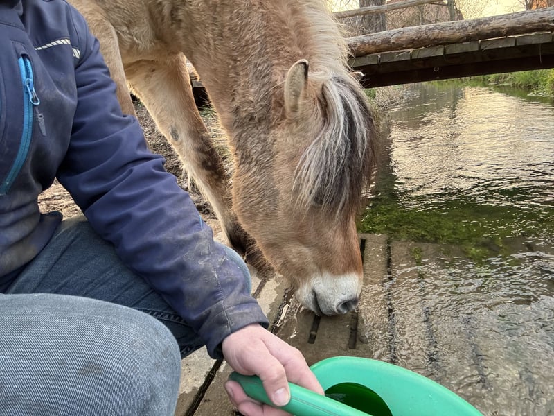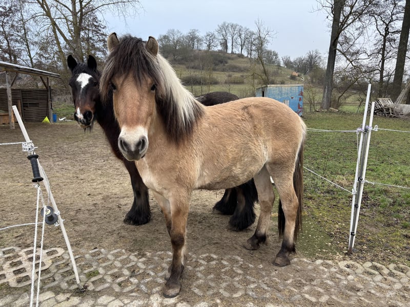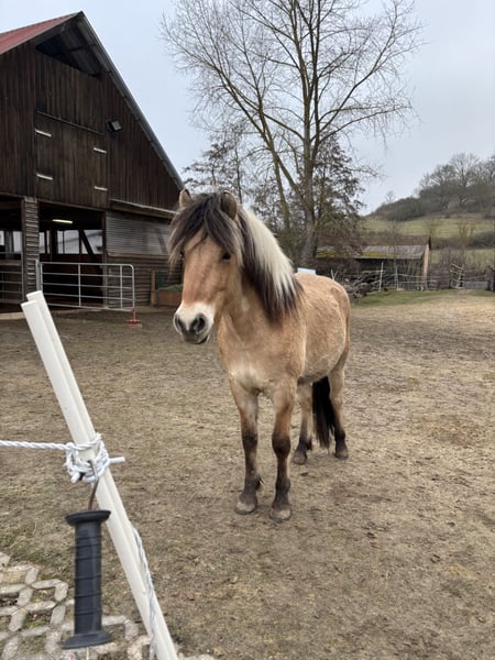 Dieser junge Rohdiamant sucht eine neue liebevolle Hand. Zum Verkauf steht unser hübscher Norweger/Fjord Wallach Calimero, geboren im Mai 2024, aktuell knapp 2 Jahre alt. Er ist sehr menschenbezogen, neugierig und im Umgang sehr freundlich. ✔️ lässt sich brav führen ✔️ gibt problemlos die Hufe ✔️ kennt bereits Gelände und verschiedene Umweltreize wie Traktoren, Hubschrauber, Bagger. ✔️ aktuell ca. 142 cm Stockmaß Altersbedingt zeigt er hin und wieder kleine Unarten, ist aber im Wesen lieb und lernwillig. Gegenüber Kindern ist er vorsichtig. Silvesterfeuerwerk oder andere plötzlichen Geräusche bringen ihn nicht aus der Ruhe - da bleibt er immer total cool und unerschrocken. Er kennt auch schon das Kutschgeschirr sowie das Gebiss. Calimero ist geimpft und wurde regelmäßig entwurmt. Er ist kerngesund und topfit. Calimero lässt sich überall problemlos anfassen und tritt auch nicht nach einem, falls er es doch mal unangenehm findet. Der Hufbearbeiter (Calimero steht barhuf) kommt regelmäßig alle 8 Wochen. Er steht zurzeit in einem Offenstall mit großen Paddock und zwei weiteren Wallachen. Im Winter bekommt er Heu und im Sommer war er 24/7 auf der Koppel. Er kennt allerdings auch Boxenhaltung. Da wir es zeitlich leider nicht schaffen, ihn weiter auszubilden, wünschen wir uns für ihn ein passendes, liebevolles Zuhause mit Pferdeverstand. Der Preis ist verhandelbar - unsere Vorstellung liegt bei 3.500€. Kommt gerne vorbei und lernt ihn Kennen :-)