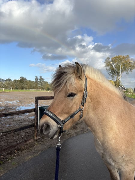 Fjord ruin, geboren april 2022 Vader is Timor Laatst gemeten stokmaat: 1,38 m Onbeleerd, afgelopen half jaar grondwerk gedaan Gekocht bij fokker. Karakter: Lieve, sociale ruin naar zowel mensen als andere paarden. Hij heeft een leuke uitstraling. Hij heeft veel charme en humor. Hij pakt het grondwerk leuk op. Hij is nieuwsgierig ingesteld en gaat graag op onderzoek uit. Hij kijkt niet snel van iets op. Hij is nog wat onzeker, dit kan zich uiten in drammerig en happerig gedrag. Ik zoek iemand die hem verder kan begeleiden en zelfvertrouwen kan geven. Hij zal een heel leuk recreatiepaard zijn. Gezondheid: Braaf bij hoefsmid en tandarts. Altijd netjes ontwormd en geënt. In juli 2025 volledig klinisch goedgekeurd. Vraagprijs €4000. Inclusief spullen (poetsspullen, halsters, touwhalster, kaptoom, hoofdstel, bitloos hoofdstel) Prijs is bespreekbaar Bij interesse en vragen, stuur me een privé bericht.