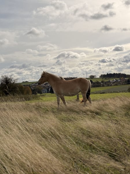 Ich biete eine typvolle, sehr menschenbezogene Fjordpferd-Jährlingsstute (Von Juni 2024) mit viel Potenzial für die Zukunft an. Sie bringt nicht nur das rassetypische Erscheinungsbild mit, sondern auch einen klaren, freundlichen Charakter. Sie ist neugierig, aufmerksam und möchte gerne lernen, braucht dabei jedoch eine faire, konsequente Bezugsperson, die ihr Sicherheit gibt und sie liebevoll, aber bestimmt weiter fördert. Die erste Grundausbildung ist bereits gelegt: Die Bodenarbeit wurde begonnen, sie ist halfterführig und kennt Equistangen. Beim Hufschmied zeigt sie sich noch etwas unruhig, bleibt dabei aber gut händelbar. Sie ist an verschiedene Haltungsformen gewöhnt – Offenstall wie auch Boxenhaltung stellen für sie kein Problem dar. Ebenso ist sie regelmäßig entwurmt und geimpft und hat bisher jederzeit gute Verträglichkeit mit anderen Pferden gezeigt, egal ob in der Herde oder in Kleingruppen. Besonders hervorzuheben ist ihre Erfahrung mit dem Hänger: Sie wurde bereits mehrfach verladen und gefahren, sowohl alleine als auch gemeinsam mit anderen Pferden. Diese Fahrten wurden bislang nicht angebunden durchgeführt, was sie souverän und gelassen gemeistert hat. Auch in neuen Situationen zeigt sie sich meist aufgeschlossen und kooperativ. Sie liebt den Kontakt zum Menschen, sucht Nähe, genießt Streicheleinheiten und zeigt sich dabei sehr verschmust. Ein kleines Thema bleibt die Sprühflasche – diese ist ihr noch nicht ganz geheuer, lässt sich aber mit Geduld sicher gut trainieren. Insgesamt ist sie ein wunderbares Nachwuchspferd für Menschen, die Spaß an der Jungpferdearbeit haben, dabei ruhig und beständig vorgehen und Freude daran finden, ein junges Pferd mit Potenzial auf seinem Weg zu begleiten. Bei ernsthaftem Interesse freue ich mich über eine Nachricht. Bailey verfügt über einen grünen Pass ohne Abstammung. Sollte ich nicht ans Telefon gehen, so werde ich mich zeitnah zurückmelden.