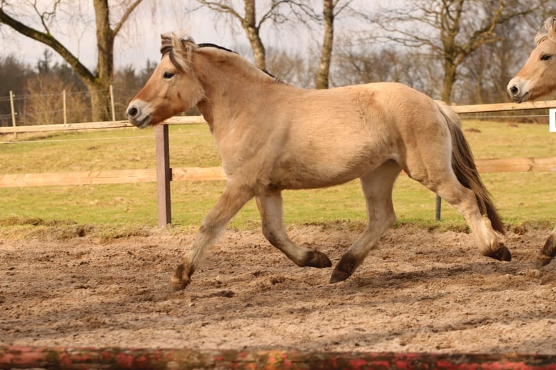 Aus unserem Fohlenjahrgang 2024 geben wir unsere charmante EEKBARGS HILDE in fördernde Hände ab. V: Bundesprämien- und Leistungshengst Viking M: Hedda, graufalb (v. BPH/LH Carlsson vom Eekbarg) Geb. 09.06.2024 Endmaß: ca. 143 cm Hilde ist eine charmante Jungstute, die nicht nur durch ihre dunkle Falbfarbe auf sich aufmerksam macht. Hilde hat einen guten Schritt und einen elastischen Trab mit einer aktiven Hinterhand. Sie kennt führen, anbinden, putzen und Hufe geben sowie erste Schritte des Gelassenheitstrainings. Zugleich sind ihr Hunde, Kühe und Trecker bereits vertraut. Im Umgang zeigt sich Hilde ruhig, gelassen, lernwillig und neugierig. Eigenschaften die sie zu einem tollen Freizeitpartner machen. Hilde verfügt über eine herausragende Abstammung, ihr Vater ist der Bundesprämien- und Leistungshengst Viking, der neben seiner erfolgreichen Nachzucht auch unter dem Reiter zu überzeugen weiß. Ihr Großvater mütterlicherseits ist unser Allrounder Carlsson vom Eekbarg, der u.a. einer der erfolgreichsten Fjordpferde im deutschen Springsport ist, mehrfache Platzierungen auf dem Freizeitpferdechampionat aufweist und im Alltag für jeden Spaß zu haben ist. Hilde wächst im Herdenverbund auf und ist vollständig sozialisiert. Sie hat einen Abstammungsnachweis des Pferdestammbuch SH. Weitere Infos senden wir gerne per PN zu. Ein Transport ist möglich. Preis: 5.500 VB Neben Hilde stehen die einjährige Eekbargs Lavendel sowie der zweijährige Wallach Captain zum Verkauf. Standort: 24791 Neu Duvenstedt