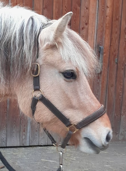 A very well-behaved, lively, and hardworking mare that already knows and can do a lot at just four years old. Always motivated and open to new challenges! She has also been used in riding therapy and as a petting and walk-around pony in a retirement home. Completely easy to handle and herd-safe, an experienced stable companion, confident on her feet, and suitable for terrain and traffic, even alone, considering her age. Enjoys jumping! Hooked up to a two-person carriage by a professional driver. Not suitable as a full-time school, beginner, or therapy pony, but ideally suited as a pony for the whole family, for competitions, courses, etc. Pregnant, due in July 2026.