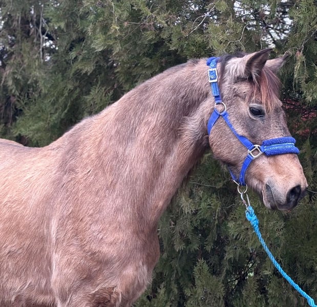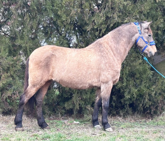 Vilma Age: 9 years old – the perfect age for further training Height: 138 cm – ideal size for sport and leisure Temperament: very well-behaved, personable, and absolutely sweet in handling Movement: elastic, lively, and with excellent balance Fjord Mix She learns quickly, works with motivation, and is always honest and straightforward. Perfect for ambitious riders who want to train a young pony according to their own wishes! If you're looking for a genuine pony with heart and quality – this is your chance!
