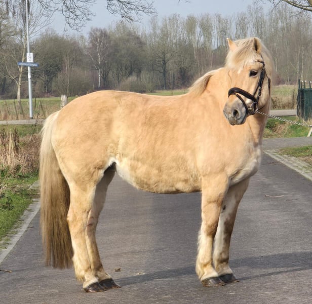 For sale is a truly sweet Fjord mare. Trudi is absolutely typical of her breed. She learns quickly, is very resilient and steady, and has a willing work ethic. She is also extremely people-oriented and genuinely affectionate. She rides calmly in the terrain, both in a group and alone. Nothing fazes her, whether it's road traffic or a spooky tarp. Since she maintains very close contact with her handler when leading and working from the ground—even when inexperienced or nervous riders are on her—she could also make a wonderful therapy horse. In the arena or on the riding ground, she is full of confidence but shows no bad habits such as bucking or rearing. Kicking, biting, and similar behaviors are completely foreign to her. Trudi is available for a trial ride and can be tested on site. To avoid tourism riding, a fee of €30 applies for the trial ride, which will be credited towards the purchase price if she is bought.
