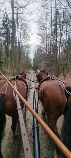 Eddie Enzo Friesian gelding Born in 2015 Barefoot Currently kept in a herd in an open stable 152 cm In mid-2023, we purchased a second Friesian from a riding school for my partner (a beginner rider). Unfortunately, he is not suitable for beginners, as he tends to buck. We had him examined thoroughly (blood tests, X-rays, gastroscopy, PSSM 1 and 2 including muscle biopsy), but nothing was found (a single mild ringbone without clinical relevance, supported by an expert opinion). Since his arrival, he has been professionally driven in 2023 (single and pair). I only drive him in the left side of the pair, and he goes really well there—happy and engaged. However, I don’t ride him so often in the cart that he gets enough exercise (which is why he is currently quite overweight). He almost daily works in the lunging arena and, despite his figure, has excellent stamina. Additionally, I have reintroduced lunging training, loading training, etc. He already knows and enjoys groundwork. Initially, I also rode him outdoors, but I felt like I was on a ticking time bomb. Since the beginning of 2024, he has not been ridden. Before us, in his previous riding school, he had different riders, was regularly turned out, and also jumped. He also participated in pony club activities with very young children. Character-wise, he is a cuddler, gentle with children, affectionate, but sometimes a nervous bundle without reason. I am selling him as a carriage horse. He can certainly be ridden (he has great basic gaits), but his strength and preference lie with driving. As a riding horse, I find him too “unpredictable.” I wish for him to be kept in a herd in an open stable or at least outside during the day (he doesn’t really know a box) and for him to have more movement and interaction than I can currently provide. He is regularly vaccinated, dewormed, and his teeth are checked annually (most recently two weeks ago). Feel free to contact me with any questions.