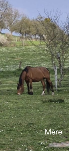 Par Aida (FRMON) et Carlsson (FRMON) CADOR prendra 1 an en juillet. Poulain OC Franche-Montagne, vendu castré , il devrait atteindre environ 1m60 à l’âge adulte. Très beau modèle avec beaucoup de charme, il présente un bon mental et une belle présence. Sa mère est robuste, avec de l’allure. Cador est manipulé, proche de l’homme, et déjà bien dans sa tête. À jour vétérinaire et parage. Visible avec sa mère en Moselle, à Guebling (57260). 💰 2 500 € – prix négociable si départ rapide Pour plus de renseignement : 0664381121