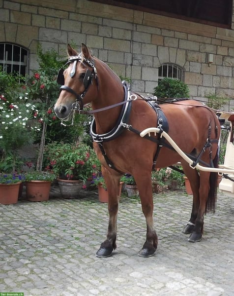 Freiberger Wallach, Jahrgang 2001, mit einem Stockmass von 167 cm. Er wurde einspännig und mehrspännig gefahren, wird aber nicht mehr geritten und eignet sich gut als Lehrmeister für junge Pferde zum Einfahren. Wir suchen für den Freiberger einen Beistellplatz oder einen Platz ans Futter. Er verträgt sich mit Wallachen, Stuten, Fohlen und Hengsten und ist auch im Umgang ein sehr liebes Pferd. Weitere Infos zum Freiberger gerne auf Anfrage.