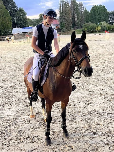 Iznogood Iag Kucyk PFS z 2018 roku, 149 cm, podkuwany, po MOVIE STAR TILLIA i matce AA zarejestrowanej w CCE, po Quercus de Maury. Startował do poziomu 110 w konkursach dla 6-latków, regularnie pokonuje 120 w domu, często plasuje się w P2/P1 (kwalifikacja do Otwartego Mistrzostwa Francji 2025 w kategorii Poney 1). Obecnie startuje w P1/Pelite, od czasu do czasu w AS2/amator. Idealny dla młodego jeźdźca, który chce regularnie zdobywać punkty na poziomie CSO i stopniowo rozwijać się w kierunku klasy AS. Pony z krwią i waleczny na arenie (prawdziwy poney do nauki). Jeżdżony z lub bez wędzidła, świetnie radzi sobie na zewnątrz, sam lub w towarzystwie, zna cross, morze, dobrze się sprawdza podczas transportu i podróży, akceptuje strzyżenie, jest bardzo przytulny i blisko związany z człowiekiem... Naprawdę rodzinny poney! • Wytrzymały, bez problemów zdrowotnych, mieszka na pastwisku w stadzie, zna boks. Oczywiście jest aktualnie zaszczepiony (w tym na rhinopneumonię), ma regularne kontrole stomatologiczne, osteopatię i podkuwanie. Dostępne wyniki kontroli weterynaryjnej po radiografiach pleców, kopyt i kłębów (gotowy do sportu, dodatkowe badania na koszt nabywcy). Dodatkowe filmy/zdjęcia na życzenie, kontakt przez WhatsApp pod numerem 06.65.47.46.82 (moja trenerka) lub bezpośrednio ze mną (06 45 40 32 84). • Możliwa wizyta i jazdy próbne w CUBLAC (19520).