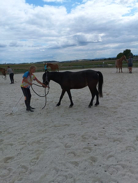Small 4-year-old PFS measuring 1.18 m at the withers, suitable for club or leisure riding. Pony close to children, participated in ethology and Equifeel clinics this summer, where she behaved impeccably. She has already foaled.