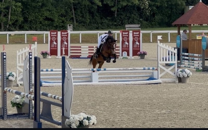Top 6-year-old PFS pony, 1.47 m (front shoes on). Sire: Fox Trott de l’Aumoy Dam: Desirose de la Guerche By Éloi IV She has competed in E3 (90 cm), then E2 (1 m), and is currently starting in CCJP for 6-year-olds and E1 (1.10 m). Ready immediately for P Elite and As2 (with potential to reach As1 in the future). A very gentle pony, very bonded to humans, with good bloodlines, strength, honesty, and a spirited attitude over jumps. Suitable for rider starting from Galop 5. Currently living out with her peers. Located near Le Mans. For contact, more information, and videos, please message directly. Price: 22 carrots 🥕🥕🥕