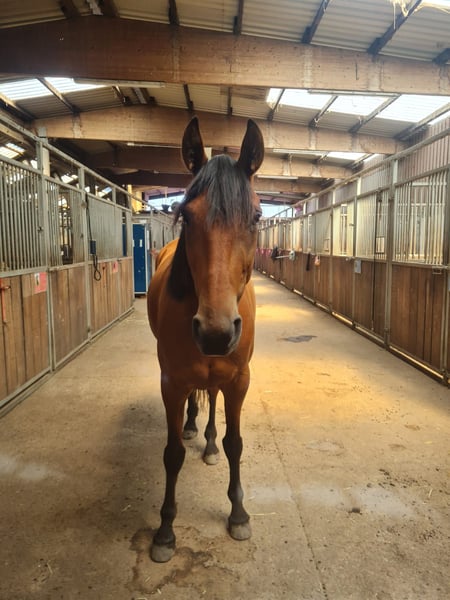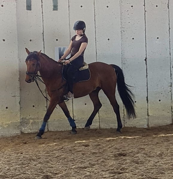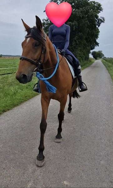 Schweren Herzens suchen wir für unseren Wallach Izmir de Bellou, genannt Winnie, ein passendes neues Zuhause. Winnie ist ein 7-jähriger (bald 8) , circa 158cm großer französischer Traber und ein absolut lieber, menschenbezogener Kerl. Er ist sehr brav im Umgang, kinderlieb, schmiedefromm und möchte seinem Menschen immer gefallen. Winnie ist sehr lernbereit , versteht sehr schnell und arbeitet motiviert mit. Aktuell wird er als Freizeitpferd geritten. Auf ihm habe ich bereits für Anfänger Reitunterricht gegeben , er wurde in allen Gangarten von einer 10-jährigen geritten und die Reitbeteiligung die ihn momentan reitet ist 14 Jahre alt , also auch von jüngeren gut händelbar. Da er ursprünglich als Traber ausgebildet wurde, benötigt er noch Unterstützung im Galopp. Deshalb wünschen wir uns für ihn einen Reiter mit etwas Erfahrung, der ihn dabei unterstützt, sich weiterzuentwickeln. Er kann mittlerweile schon gut galoppieren, muss aber noch einiges dazu lernen , z.b die Ecken richtig mitzunehmen. Er eignet sich besonders für Menschen, die Freude daran haben, mit einem Pferd zu arbeiten, gemeinsam Fortschritte zu machen und einen zuverlässigen Freizeitpartner aufzubauen. Im Gelände ist Winnie grundsätzlich brav unterwegs, in der Gruppe ist er sogar oft einer der mutigsten, alleine braucht er manchmal die Sicherheit durch den Reiter. Gesundheitlich zeigt er sich unauffällig , ich habe ihn seit er 3 Jahre alt ist und er hatte bei mir nie gesundheitliche Probleme. Winnie ist rangniedrig und hat keine Probleme sich an Situationen anzupassen , Konflikten mit anderen Pferden geht er aus dem Weg. Standort: Weyhe Preis: VB Bei ernsthaftem Interesse oder Fragen freuen wir uns über eine Nachricht. Ein Kennenlernen ist natürlich möglich. Meine Nummer ist die :+49 1706 011206. Wir freuen uns auf Ihre Nachricht!
