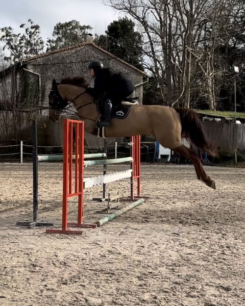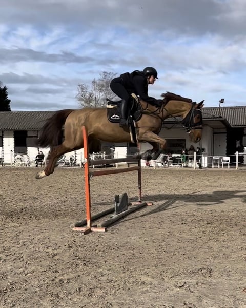 - Trotting mare with papers - 16.9 hh at the withers - Gelding - 7 years old • With very high potential (VERY CLEAN) for 1.10-1.20 m competitions - Currently jumping 1 meter • Home schooling at 1.15 m • Excellent temperament and character, suitable for amateurs, very easy to handle with minimal experience