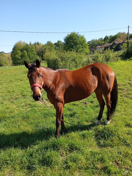 Se vende yegua Trotadora Española (Indira G), nacida en marzo de 2018 (7 años). Genética excepcional: Hija directa del semental francés Univers de Pan (ganador de 1,7M€) y Daisy Seguinel. Documentación: Inscrita en el Libro Genealógico del Caballo Trotador Español (ASTROT) con pasaporte en regla. Aptitudes: Muy buena morfología, castaña, ideal para andadura o como yegua de cría por sus excelentes orígenes franceses. Estado actual: Está domada pero lleva 2 años sin montarse regularmente , de ahí su precio. Es una yegua noble y con mucha clase. Oportunidad para quien busque una yegua joven con orígenes de primera para andadura o reproducción. Solo gente seria.