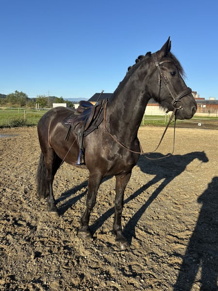 Zum Verkauf steht ein wunderschöner Friesen-Wallach, geboren im Jahr 2021. Mit seinem eleganten Erscheinungsbild als Rappe und einem Stockmaß von 160 cm ist er ein echter Blickfang. Dieser talentierte Wallach ist bestens für die Dressur geeignet und zeigt bereits vielversprechende Ansätze in der Arbeit. Sein freundliches Wesen und seine Lernbereitschaft machen ihn zu einem idealen Partner für ambitionierte Reiter, die Freude an der Dressurarbeit haben. Er ist gut erzogen, brav im Umgang und hat ein angenehmes Temperament. Ob für den Freizeit- oder Turniereinsatz – dieser Friese wird Sie mit seiner Eleganz und seinem Charme begeistern. Er ist weder schreckhaft noch hat er Unarten beim reiten bzw bei der Arbeit. Hufschmied, einsprühen sowie Hänger sind kein Problem für ihn. Er ist sehr verträglich und rangniedrig und wird momentan tagsüber in der Herde und nachts in der Box gehalten. Standort: 8410 Wildon Bei Interesse oder für weitere Informationen sowie Videos melden Sie sich gerne. Wir freuen uns auf Ihre Nachricht!