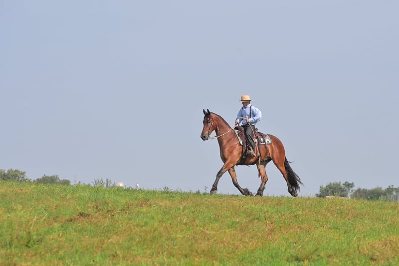 ONLINE-AUKTION Bieten Sie jetzt auf www.PlatinumEquineAuction.com Startgebot: 3.500 $ Auktion endet am 2. November 2025 Benötigen Sie ein neues Sattel? Schauen Sie auf unserer Website oder Facebook bei White Rock Saddles vorbei. Ein Blick auf Donald genügt, um sofort zu erkennen, warum Friesianer als königliche Pferde bekannt sind. Er verkörpert Eleganz gepaart mit Leistungsbereitschaft. Donald ist ein 4-jähriger, beim FBHR registrierter Friesian-Mix-Geländewagen, der 16,2 hh groß ist, eine Schuhgröße 3 trägt und etwa 635 kg wiegt. Er ist ein außergewöhnliches Show-Pferd mit großem Potenzial, in englischen Disziplinen zu glänzen. Donald wurde an Trails, Hindernissen im Dressurviereck und sogar am Trubel des kleinen Stadtlebens gewöhnt. Er ist vollständig desensibilisiert und bereit, seine Ausbildung fortzusetzen. Donald wurde bereits in Dressur ausgebildet und zeigt viel natürliches Talent. Seine beeindruckenden Bewegungen machen auch unerfahrenen Reitern die außergewöhnliche Begabung sichtbar. Er wurde sowohl in englischer als auch in westernspezifischer Ausrüstung geritten und besitzt eine solide Grundlage in beiden Disziplinen. Wir sind überzeugt, dass ihn diese Vielseitigkeit für seinen nächsten Reitpartner besonders attraktiv macht. Er ist ein sehr vorwärts gerichteter Bewegungsablauf, mit einem beeindruckenden Trab im Extended. Wir empfehlen ihn für Reiter mit mittlerem bis fortgeschrittenem Können oder für Reiter, die mit einem Trainer zusammenarbeiten. Auch Anfänger im Erwachsenenalter könnten Donald mit Trainerhilfe reiten. Donald ist von Zebb M, einem reinrassigen Friesianer, gezogen, und stammt von einer Sportpferdestute ab, die zu 50 % Friesianer ist. Damit ist dieser beeindruckende Wallach zu 75 % Friesianer. Ob Sie englische oder westernliche Disziplinen bevorzugen – wir sind überzeugt, dass Donald in Dressur oder Western Dressur hervorragend performen wird. Mit weiterer Ausbildung ist er auch in Springen, Vielseitigkeit oder Reitkunst sehr wettbewerbsfähig. Er meistert den Straßenverkehr problemlos und lässt sich von den üblichen Ablenkungen in kleinen Städten nicht stören. Wasser überquert er ohne Zögern, ebenso wie Baumstämme im Trail oder gefallene Holzstücke. Er wurde sowohl mit Groß- als auch mit Kleintieren sowie Geflügel geritten und hat auch Wildtiere auf Feldern und Trails erlebt. Im Dressurviereck zeigt Donald im Innen- und Außenbereich stets selbstsichere Leistungen. Seine Beweglichkeit ist beeindruckend, er passt sich mühelos verschiedenen Bodenverhältnissen an. Jedes Mal, wenn man auf ihn aufsitzt, ist die gleichbleibende Qualität seines Reitens garantiert – auch nach längerer Pause. Er ist ehrlich, humpelt oder schnappt nicht, selbst wenn er frisch ist. Donald ist gut erzogen und verhält sich vorbildlich, egal ob er auf der Koppel steht oder im Stall. Im Offenstall kommt er gut mit Artgenossen zurecht und ist leicht zu fangen. Er kann an der Box, an der Kreuzgalgen angebunden werden, ist ein vorbildlicher Partner für Hufschmied und Tierarzt, lässt sich problemlos herrichten, ist gut zum Borten und steht ruhig beim Aufsatteln, am Polowrap und beim Aufstieg. Ich stehe gern für ein Gespräch mit Ihnen oder Ihrem Trainer zur Verfügung, um sicherzustellen, dass Donald perfekt zu Ihnen passt. Er wird mit einem aktuellen negativen Coggins-Test sowie einer Pre-Purchase-Untersuchung meines Tierarztes verkauft. Bei Interesse an einem Kennenlernen von Donald oder Fragen vor Ende der Auktion rufen Sie bitte Edwin Raber unter 319-283-0616 an. Standort: Fairbank, Iowa.