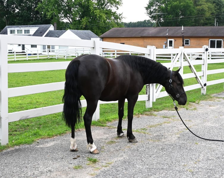 ONLINE AUCTION Place your bids at www.PlatinumEquineAuction.com Starting Bid $3500 Auction ends August 11th, 2024 Need a new saddle? Check out White Rock Saddles on our website or Facebook! Meet Barney! Barney is a 13.2H, 2020 model, black friesian cross. He is a one of a kind pony that is a barn favorite that never disappoints. He is broke to ride the very best and also drives single and double. He rides english, western or bareback. He will go anywhere that you point him and has been down busy highways with fast traffic and is also great on trails. He will cross ditches, creeks, deadfall and scales steep slopes. He is easy to catch, tack up, handle his feet, loves a bath and is farrier friendly. He will walk, trot and canter very easily, is smooth at all speeds and takes the correct leads. Barney is one that the whole family can ride and enjoy. He has more whoa than go and will take care of any age of rider, young or old. He is up to date on coggins, worming and rabies vacs. He sells sound. If you have any questions call Silver Star Stables Norman 319-284-0001. Located in Sturgis, MI. ONLINE AUCTION Place your bids at www.PlatinumEquineAuction.com Starting Bid $3500 Auction ends August 11th, 2024 Need a new saddle? Check out White Rock Saddles on our website or Facebook!