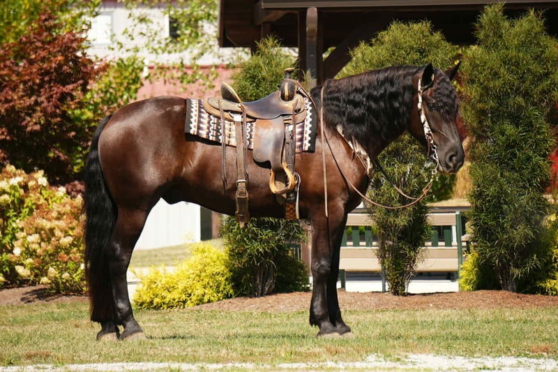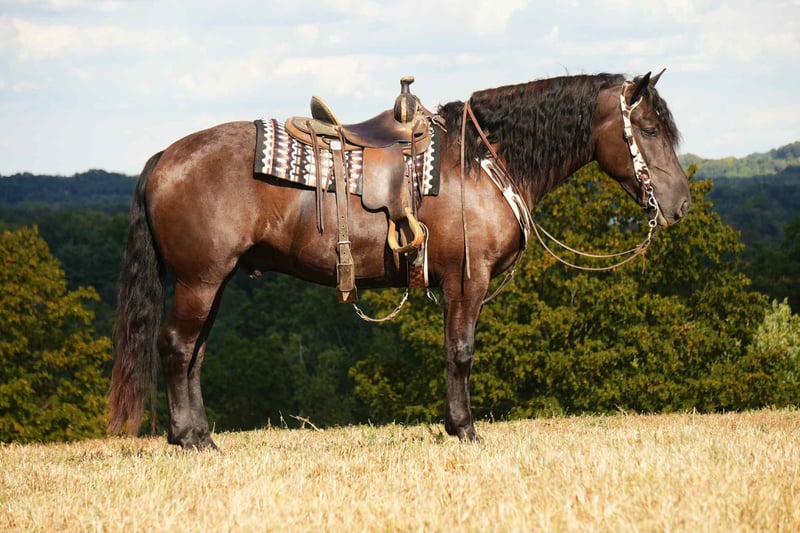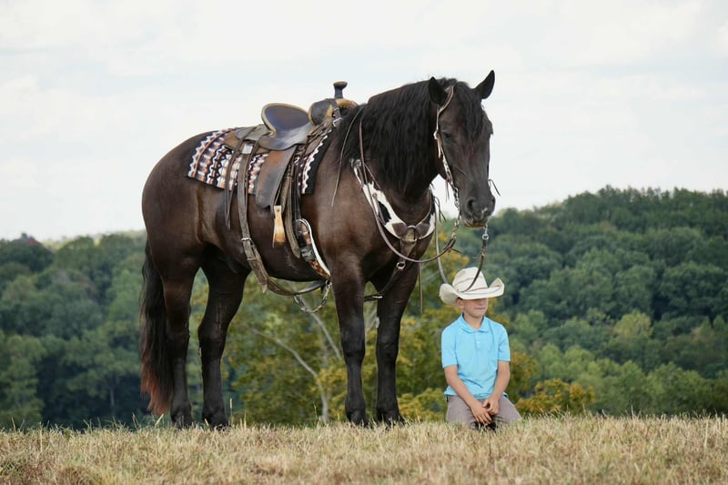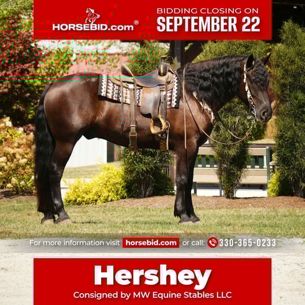 🍁𝒕𝒉𝒆 𝐅𝐀𝐋𝐋 𝑺𝒑𝒆𝒄𝒕𝒂𝒄𝒖𝒍𝒂𝒓🍁 Happening now thru MONDAY | SEPTEMBER 22nd - Available EXCLUSIVELY on HorseBid's website! For more details and to register visit: www.Horsebid.com CONSIGNOR CONTACT: MW Equine Stables LLC 330-365-0233 LOCATION: Fresno, OH BREED: Friesian/Percheron Cross COLOR: Black HEIGHT: 16 AGE: 6 GENDER: Gelding ♦️Meet Hershey…. He is the Best Horse Ever ‼️ Hershey is a 6 year-old 50% Friesian 50% Percheron on cross gelding. He stands around 16 hands. If beauty and elegance are what you’re looking for, then Hershey is your guy! He has all the beautiful Friesian characteristics. Hershey will do anything you ask of him. This is once in a lifetime Opportunity. Not every day do they come along like Hershey! He is quiet, calm, and collective. With his rocking chair canter, and his beautiful, elegant trot, Hershey will have everyone noticing you! He is broke to ride and drive the very best . He crosses bridges, walk through the deepest waters, and will jump over the logs . He rides Western, English, bridalless and drives.He is a complete gentleman to be around whether being handled on the ground or under saddle. Hershey makes beautiful, smooth, lead departures, great transitions, takes his lead correctly every time, and is very willing to work for you. He has been exposed to everything on the trails, making him even more prepared for the excitement that happens outside of the Arena. Hershey stands crosstied , and patiently waits while bathing and being groomed , and tacked up, and bridal. While riding through town, you can take him anywhere! Down, busy, sidewalks, and streets, through parking lots of vehicles and pedestrians, across bridges, and he will have the same ride every time. On the trails, Hershey will keep his rider safe. Gracefully stepping over logs, through creeks, and all kinds of obstacles you might encounter. When going for a carriage ride, Hershey is easy to harness and hitch. He is trained, single and double. He will take you down busy highways, Streets , and make you feel like an absolute royalty. He looks stunning under harness and has enough style to stand out on the big city streets. If you’re searching for your next all around prospect ,carriage horse, family horse, or trail horse… ☑️Hershey checks every box! It is a big world and the opportunities for large gelding are very rare. If you’re in the market for your forever horse, here he is! ☎️ FMI Contact Marcus @ 330-365-0233 Located in Fresno, Ohio …… Nationwide Shipping Available ‼️Feel Free to schedule a ride with Hershey at our farm ‼️