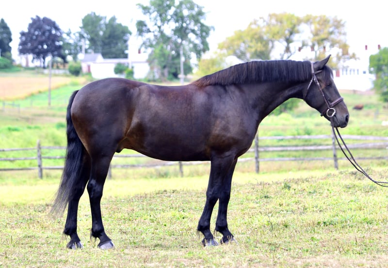 🍂 𝓐𝓾𝓽𝓾𝓶𝓷 𝑨𝑳𝑳 𝑺𝑻𝑨𝑹 𝑳𝑰𝑵𝑬𝑼𝑷 🍂 Happening now thru MONDAY | OCTOBER 6th - Available EXCLUSIVELY on HorseBid's website! For more details and to register visit: www.Horsebid.com CONSIGNOR CONTACT: CM Farms 717-875-2061 LOCATION: Gap, PA BREED: Morgan/Friesian X REGISTERED: No COLOR: Bay/Black HEIGHT: 16–16.1hh AGE: 9 GENDER: Gelding ✨Meet Bohdi✨ This stunning hunk of a gelding is a 9-year-old, 16–16.1hh Morgan/Friesian cross. He’s broke to ride both Western and English, or hop on bareback! Bohdi has lovely conformation and takes up leg well. Riding him feels like sitting on a couch. With a sweet personality and a love for people, he’s quickly become a barn favorite. He loves to trail ride, and he’ll be one of the best trail partners you’ll ever find. Seriously—this guy has ridden everywhere: through the drive-thru for lunch, down the strip in town, to the grocery store, Wawa, all the mountain trails—you name it! He truly loves to go out and is a steady, reliable partner every time. Steep banks or water crossings don’t bother him—he’s been there, done that. Bohdi will happily go for a dip in the river, cross covered bridges, climb steep mountains, and travel through open fields, all while staying relaxed around hikers, bikers, and dogs. Logs and small fences? He’ll pop right over. He’s schooled cross-country and proved himself to be fairly athletic! With more conditioning, he could easily clear some large jumps. (He could stand to lose a few pounds😂.) That being said, Bohdi is an extremely easy keeper and will keep your feed bill low! He’d be a great choice for a guest/husband horse, fox hunting, paper chases, or simply logging miles on the trail. We’d throw just about anyone on him for a trail ride- and not have to worry. In the arena, Bohdi walks, trots, and canters both directions with correct leads. Most of his focus has been on fitness and muscle building. He’s well educated, knows collection, has a handy neck rein, moves off the leg, and is knocking the rust off his spin and side pass. With consistent work, he improves every day and is developing a wonderful willingness to work. He’s the perfect balance of whoa and go—forward when asked and stopping on a dime. Comfortable to sit, with an easy trot, this gelding would look fancy in a dressage ring. He’s been schooling simple jump combinations and has done amazingly well. He’s always a straightforward and simple ride. Bohdi prefers trail riding over arena work, but he’ll put in the effort when asked. Intelligent and curious, he likes to stay interested and engaged. Reliable enough to pack around the “drunkles” and a perfect gentleman for lead-line rides with the littles. In the ring, Bohdi is a fun and talented enough horse for experienced riders, though sensible enough he could also be suitable for an amateur working with a trainer. In the barn, Bohdi is always a good boy. Kids can braid him, tack him up, or run around without issue. Safe to have around, he has excellent ground manners, loves attention and treats, and will stand for hours on the ties for a spa day. He’s easy to turn in and out, gets along with all the other horses, loads right up, and is well-behaved in his stall. Always respectful for the vet, dentist, and farrier, Bohdi is a kind, dependable horse with a bright future. Bohdi is UTD on shots, dentist, coggins, farrier, and deworming.