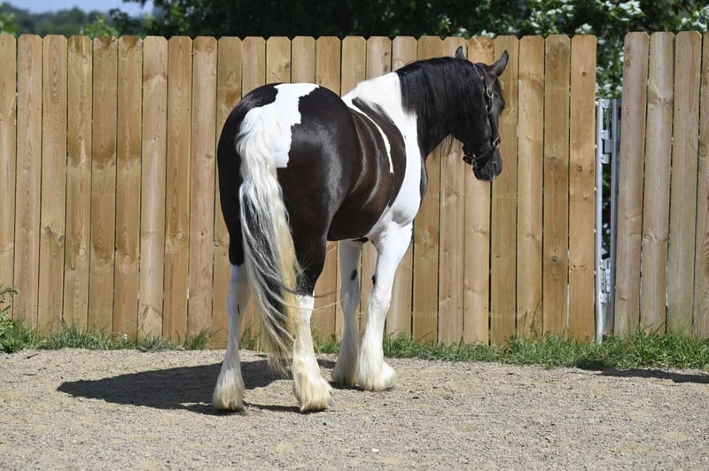 ONLINE AUCTION Place your bids at www.PlatinumEquineAuction.com Starting Bid $3500 Auction ends July 28th, 2024 Need a new saddle? Check out White Rock Saddles on our website or Facebook! Desty is a 9yr old, 15H, 1200lb, ¾Gypsy Vanner ¼Friesian mare. Desty is a well built, well broke, Gorgeous mare. She trail rides great, she loves the creek and is not bothered by the mud, brush, logs ect. She takes her time and crosses anything with ease. Desty is a pretty mover and has 3 nice gaits, she walks relaxed and calm. She jogs smoothly and has a very nice easy lope. We recently started jumping her and she really enjoys it! Desty is a beautiful well mannered mare, she is quiet in the barn and is easy to handle. Desty sells 100% sound with no vices. Please call or text Ray Raber 330-275-2877 FMI. ONLINE AUCTION Place your bids at www.PlatinumEquineAuction.com Starting Bid $3500 Auction ends July 28th, 2024 Need a new saddle? Check out White Rock Saddles on our website or Facebook!