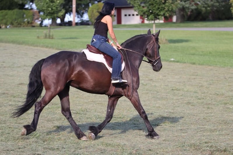 ONLINE AUCTION Place your bids at www.PlatinumEquineAuction.com Starting Bid $3500 Auction ends September 29th, 2024 Need a new saddle? Check out White Rock Saddles on our website or Facebook! Juliet is by far a barn favorite! She is a 9 year old Registered Friesian Bloodhorse mare. She stands 15.2 hands and is gorgeous and very elegant in everything she does. She is broke to ride and drive with a beautiful walk, trot, canter. Juliet has a lot of action and is fluid in her gaits, she is very quiet and effortless to ride. Juliet has had some dressage training, she has been trail ridden across bridges and over logs, she will cross the road, and past traffic and dogs. She is a special, hard-to-find mare that will be a head turner everywhere she goes. Juliet never has a bad day, turn her out with other mares or geldings, she is great on the ground, ties, loads, and stands to be clipped! 100% sound mind and body! For more information or if you would like to come try this wonderful mare please call or text Kassie Long 443-991-9282 Located in Marshall, MO. ONLINE AUCTION Place your bids at www.PlatinumEquineAuction.com Starting Bid $3500 Auction ends September 29th, 2024 Need a new saddle? Check out White Rock Saddles on our website or Facebook!
