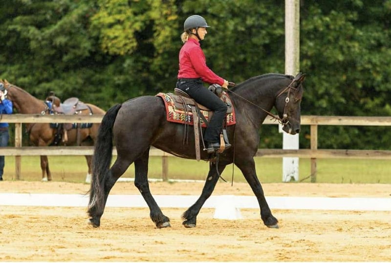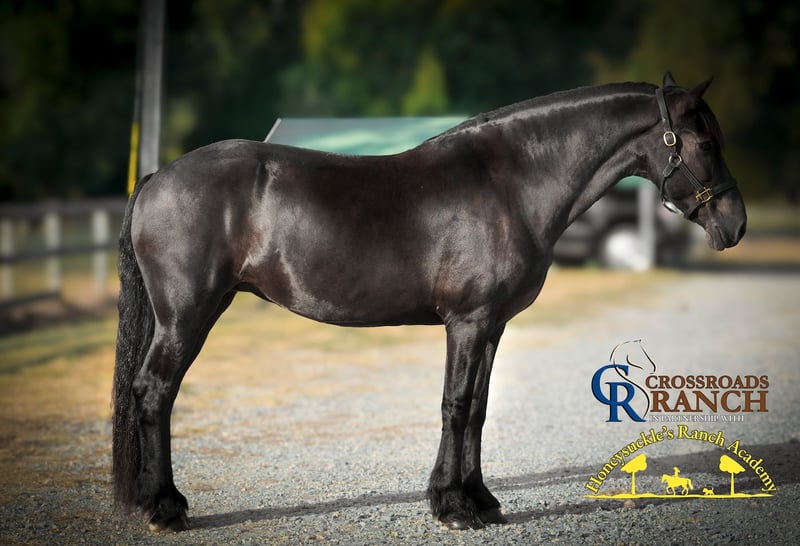 ♦️𝐍𝐄𝐖 𝐘𝐄𝐀𝐑'𝐒 𝑬𝒙𝒕𝒓𝒂𝒗𝒂𝒈𝒂𝒏𝒛𝒂♦️ Happening now thru MONDAY | JANUARY 12th - Available EXCLUSIVELY on HorseBid's website! For more details and to register visit: www.Horsebid.com CONSIGNOR CONTACT: Crossroads Ranch 704-617-6177 LOCATION: Monroe, NC BREED: Friesian Sport Horse REGISTERED: Yes REGISTERED NAME: Zoe Girl COLOR: Black HEIGHT: 15.3-16.00 hands AGE: 15 GENDER: Mare Lyric is a stunning, seasoned, and genuinely versatile mare with a depth of experience both under saddle and in harness. She has been thoughtfully trained and proven across multiple disciplines, making her a wonderful choice for someone who wants a capable, experienced partner rather than a one lane horse. Under saddle, Lyric is a beautiful mover, she's comfortable, and is solid and reliable, especially on the trail where she is confident, steady, and sensible. She is comfortable with water crossings, varied terrain, and obstacle work and approaches new situations with a calm, willing attitude. She excels in Western Dressage with scores in the 70s and performs extremely well at shows, showing correctness, responsiveness, and pride in her work. Lyric has also been fox hunted by both a 12 year old child and an amateur adult, works cows, and swims in the lake. Her versatility reflects not only her training, but her kind, adaptable mindset. What truly sets Lyric apart is her personality. She is extremely sweet, affectionate, and people focused. She enjoys connection, seeks out her person, and is happiest spending time with those she trusts, whether that is during grooming, quiet moments in the barn aisle, or simply being together. She is soft natured and attentive and takes comfort in routine and familiar faces. Lyric genuinely wants a relationship with her person and forms strong bonds. Her kindness does not mean she is dull. Under saddle she is engaged and responsive, while on the ground she is gentle, loving, and easy to be around. She is the kind of horse who takes pride in her job and enjoys having a purpose. Lyric is also broke to drive and works comfortably in harness, bringing the same steady, prepared attitude to driving that she does under saddle. This versatility makes her a wonderful option for someone who enjoys variety. She is well handled and accustomed to routine barn life. She loads, ties, and stands quietly for grooming, veterinary, and farrier care and has been thoughtfully maintained. Lyric is an easy keeper, does not require shoes, stays fit on reasonable feed, and prefers living outside full time. She is also easily bred and would make an exceptional broodmare. Lyric is best suited for an intermediate to confident rider who appreciates a well trained, responsive horse. She is not recommended for true beginners, but she is a wonderful partner for someone who rides with feel and consistency. Lyric offers rare versatility, proven experience, and maturity. Horses like her, with both a kind heart and a capable mind, are becoming harder and harder to find.