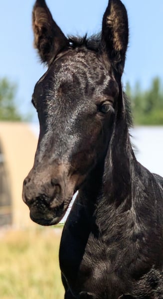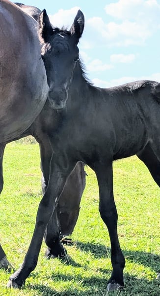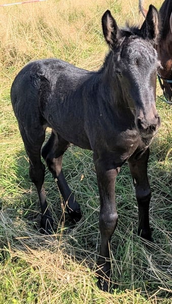 ✨ Adorable Filly Seeks Forever Home ✨ Our charming little lady (born 04.08.2025) is now looking for her new home. She is jet black and shines like polished. An extremely people-oriented, curious, and fearless young lady who immediately wins everyone over with her gentle nature and lovable charm. Her mother is a Haflinger-Warmblood mare without pedigree. Her father is a licensed and ultra-baroque Friesian stallion. She will receive a passport from ZSSE. This beautiful, strong foal combines baroque expression with a wonderful character and has the best prerequisites as a leisure or future riding horse. ❗️Placement only in the very best hands with species-appropriate care. Further information & pictures available upon request. If you are interested in this beautiful sweet princess, please get in touch. An appointment for viewing can be arranged soon.