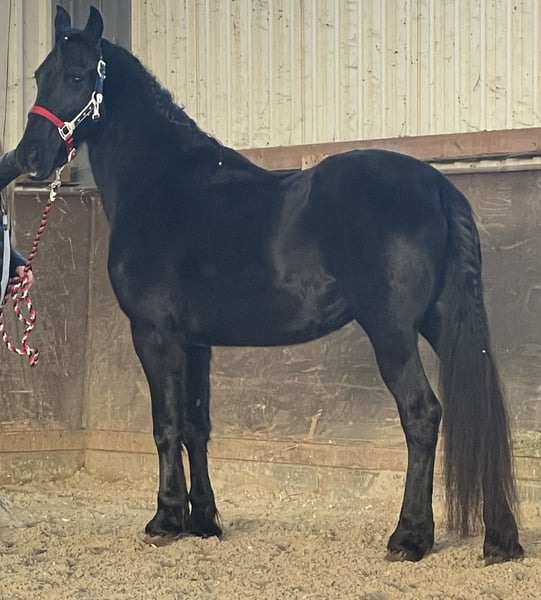 Leider müssen wir unserer 3,5 jährigen Friesen mix Stute , wegen schwerem Krankheitsfall in der Familie ein neues Zuhause suchen. Zur Zeit hat sie ein Stockmass von 1,51 und steht noch voll in der Entwicklung ( ist noch nicht fertig). Sie stand bevor sie zu uns kam 24/7 auf großen Wiesen und wurde 3 jährig in kurzen Einheiten 4 mal geritten in drei Gangarten, auch Freihändig ( bei ernstem Interesse, Video vorhanden ). Da sie uns aber viel zu Babyhaft ist und voll in der Entwicklung steht, haben wir sie 1 mal die Woche spielerisch gearbeitet an der Longe und am Langzügel. Obwohl sie das sehr brav gemacht hat war sie uns zu jung dafür. Wir arbeiteten konsequent aber nur mit positiver Verstärkung mit ihr. ( Was wir ihr auch für die Zukunft wünschen). Sie kann Küsschen geben, stampfen und Nein sagen auf Komando, sowie Halt und Rückwärts. Wir hatten sie im Januar Aufgestallt und sie hat keine Probleme in der Fensterbox und geht am Tag auf den Paddock. Putzen einsprühen, Hufe geben kennt sie. Auch beim Impfen und Zahnarzt war sie sehr brav. Auf den Hänger ging sie ohne Probleme. Sie ist frisch geimpft, Entwurmt und der Zahnarzt war vor 8 Wochen da. Sie hat einen Pass. Sie wird mit allem Zubehör, Sattel Trense, neuem Eskadron Halfter mit Strick, Buccas Regendecke 50g, Abschwitzdecke, Putzkasten, Sattelwagen abgegeben. Auf engen Paddocks sucht sie sich ihre Pferdefreunde aus, sie mag nicht jedes Pferd. Auf dem Bild unterm Sattel ist Kyara 6 Monate jünger als auf den anderen Bildern. Bei Interesse bitte einfach melden.
