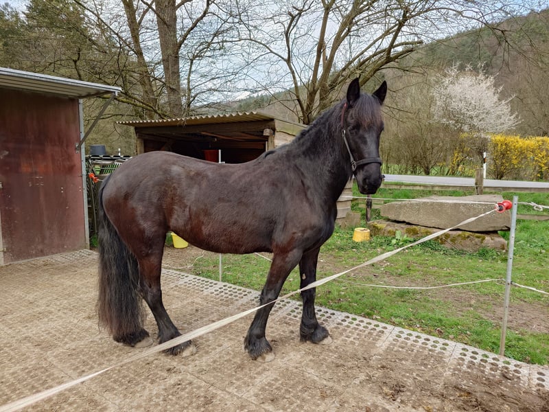 Traum in Schwarz: Elegante 4-jährige Friesenstute mit viel Potenzial Zum Verkauf steht diese bildschöne, 4-jährige Friesenstute, die nicht nur durch ihre klassische Optik, sondern auch durch ihren ehrlichen Charakter überzeugt. Eckdaten: Rasse: Friese Alter: 4 Jahre (Geboren: 30.03.2022) Geschlecht: Stute Stockmaß: ca. 160 cm Abstammung: Karon vom Goldfeld x Puschkin Papiere: sie ist eingetragen im FPZV, als Fohlen prämiert mit 1. Prämie Beschreibung: Diese junge Dame besticht durch ihr schwarzes Fell und die typisch schwungvollen Gänge. Sie zeigt sich im täglichen Umgang sehr menschenbezogen, neugierig, brav beim Putzen und schmiedefromm. Ausbildungsstand: Ihrem Alter entsprechend ist sie noch nicht geritten. Kennt Halfter und Bodenarbeit. Sie lernt extrem schnell, ist stets motiviert und möchte gefallen. Aufgrund ihres ausgeglichenen Temperaments ist sie ein ideales Nachwuchspferd. Regelmäßig entwurmt und geimpft und die Zähne kontrolliert. Sie ist bei uns im Offenstall im Herdenverband aufgewachsen. Wir suchen für sie ein 5-Sterne-Zuhause, in dem sie weiter gefördert wird. Preis: 12.900,00 € Bei ernsthaftem Interesse freue ich mich über eine Nachricht, um einen Termin zum Kennenlernen zu vereinbaren.