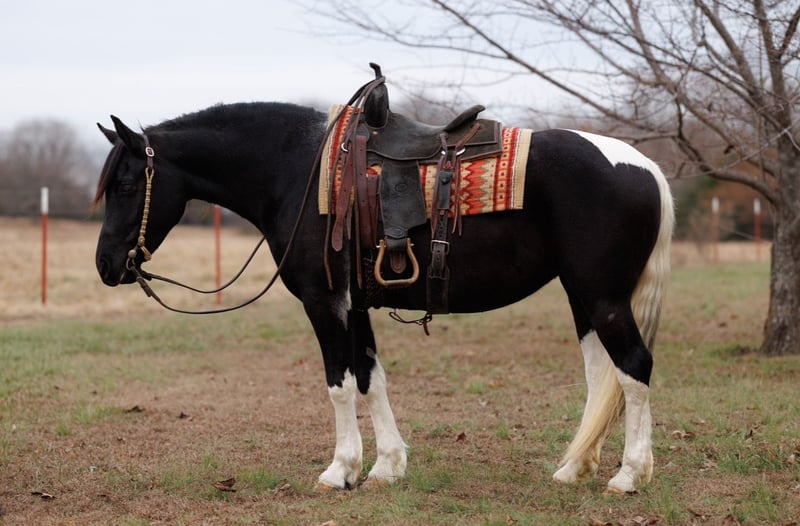 ⚜️ 𝓗𝓮𝓻𝓲𝓽𝓪𝓰𝓮 𝐖𝐢𝐧𝐭𝐞𝐫 𝓒𝓵𝓪𝓼𝓼𝓲𝓬⚜️ Happening now thru MONDAY | DECEMBER 29th - Available EXCLUSIVELY on HorseBid's website! For more details and to register visit: www.Horsebid.com CONSIGNOR CONTACT: Lacey Wilf 501-940-8704 LOCATION: Quitman, AR BREED: Fresian Sport Horse REGISTERED: No REGISTERED NAME: Meredith COLOR: Black and White Tobiano HEIGHT: 15.1 AGE: 5 GENDER: Mare Meredith is an exceptional 5 year old, 15.1-hand black-and-white Friesian Sport Horse mare whose presence is as refined as her ability is genuine. Elegant, composed, and beautifully mannered, she carries herself with a natural sophistication that turns heads everywhere she goes. Beneath her striking exterior is a truly versatile partner—one that rides and drives the very best, offering a smooth, balanced, and confidence-inspiring feel every time you pick up the reins. Under saddle, Meredith is a pleasure in both English and Western disciplines. She moves with fluidity and rhythm, willingly working into the bridle and staying soft, adjustable, and attentive to her rider. She goes over jumps quietly and correctly, maintaining her poise and form. Her ride is steady, uncomplicated, and forgiving, making her well suited for riders of many levels while still being enjoyable for more experienced hands who appreciate quality and feel. Meredith is also a seasoned driving horse, harnessing and working with the same grace and reliability she shows under saddle. She is responsive, calm, and steady-minded, making her a standout choice for someone seeking a horse that excels both in harness and under the rider. Her experience extends far beyond the arena. Meredith has been used in parades and at the stockyards, where she has confidently penned and pushed cattle, handling pressure and commotion with quiet assurance. She is exceptionally reliable around traffic, dogs, tarps, and busy environments—never rattled, always level-headed, and happy to go wherever she’s asked. On the trail, she is sure-footed and willing— crossing water, bridges, and other obstacles with ease and curiosity rather than hesitation. Meredith is a dream to live with and handle day to day. She is good to catch, stands politely for tacking, and is patient and mannerly while being groomed and saddled. She loads and hauls quietly, settles in new places like a seasoned traveler, and remains the same dependable mare away from home as she is in familiar surroundings. She is also excellent for the farrier—respectful, steady, and easy to work around—making her a straightforward, low-stress partner in every sense. What truly defines Meredith is her temperament: genuinely gentle, kind, and people-oriented—a mare that takes care of her rider and makes every ride feel polished and enjoyable. Meredith offers a rare blend of elegance, versatility, and real-world dependability, and she does it all with class!
