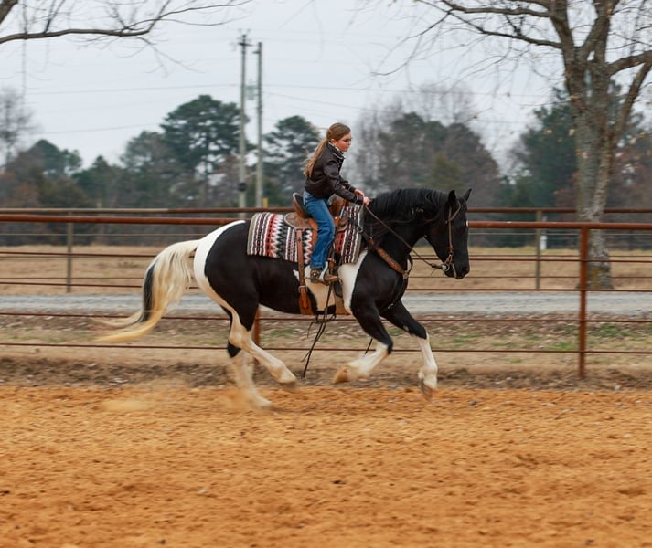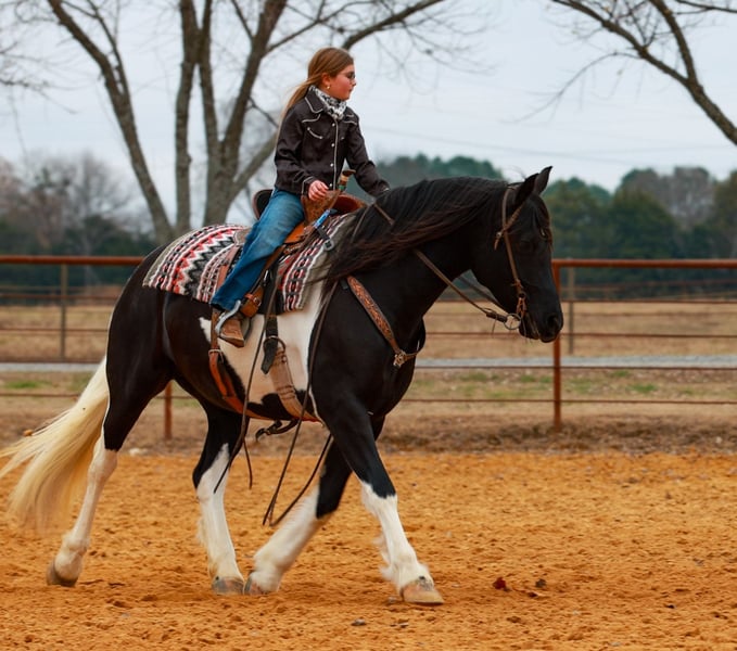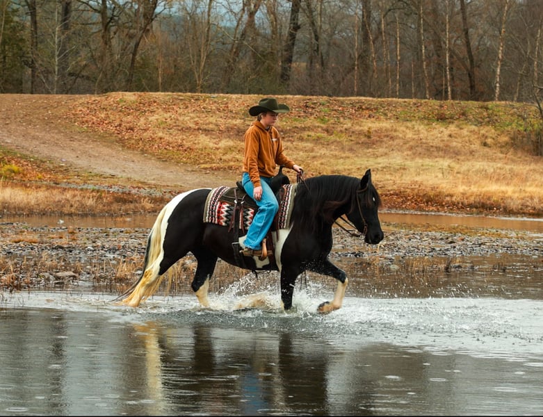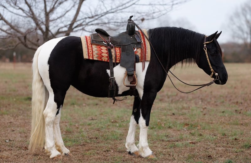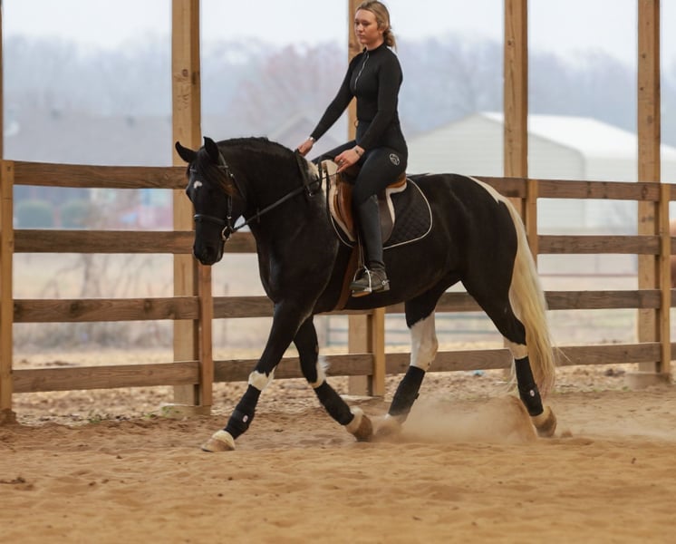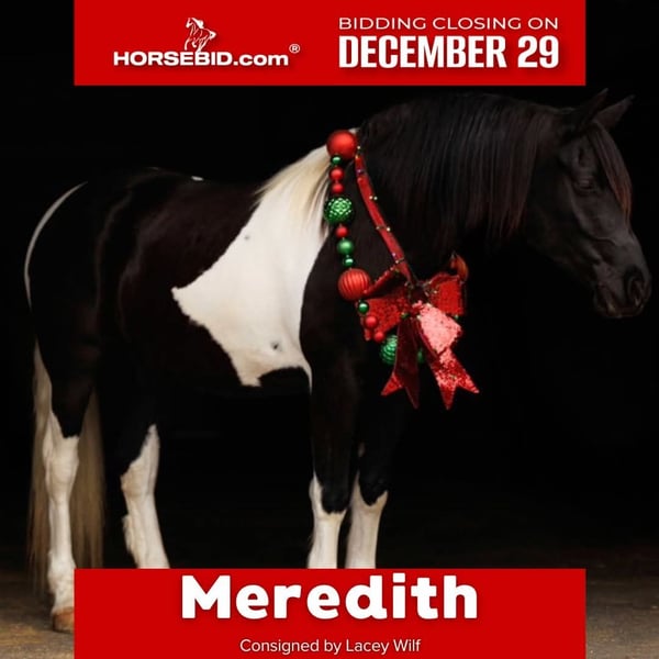 ⚜️ 𝓗𝓮𝓻𝓲𝓽𝓪𝓰𝓮 𝐖𝐢𝐧𝐭𝐞𝐫 𝓒𝓵𝓪𝓼𝓼𝓲𝓬⚜️ Happening now thru MONDAY | DECEMBER 29th - Available EXCLUSIVELY on HorseBid's website! For more details and to register visit: www.Horsebid.com CONSIGNOR CONTACT: Lacey Wilf 501-940-8704 LOCATION: Quitman, AR BREED: Fresian Sport Horse REGISTERED: No REGISTERED NAME: Meredith COLOR: Black and White Tobiano HEIGHT: 15.1 AGE: 5 GENDER: Mare Meredith is an exceptional 5 year old, 15.1-hand black-and-white Friesian Sport Horse mare whose presence is as refined as her ability is genuine. Elegant, composed, and beautifully mannered, she carries herself with a natural sophistication that turns heads everywhere she goes. Beneath her striking exterior is a truly versatile partner—one that rides and drives the very best, offering a smooth, balanced, and confidence-inspiring feel every time you pick up the reins. Under saddle, Meredith is a pleasure in both English and Western disciplines. She moves with fluidity and rhythm, willingly working into the bridle and staying soft, adjustable, and attentive to her rider. She goes over jumps quietly and correctly, maintaining her poise and form. Her ride is steady, uncomplicated, and forgiving, making her well suited for riders of many levels while still being enjoyable for more experienced hands who appreciate quality and feel. Meredith is also a seasoned driving horse, harnessing and working with the same grace and reliability she shows under saddle. She is responsive, calm, and steady-minded, making her a standout choice for someone seeking a horse that excels both in harness and under the rider. Her experience extends far beyond the arena. Meredith has been used in parades and at the stockyards, where she has confidently penned and pushed cattle, handling pressure and commotion with quiet assurance. She is exceptionally reliable around traffic, dogs, tarps, and busy environments—never rattled, always level-headed, and happy to go wherever she’s asked. On the trail, she is sure-footed and willing— crossing water, bridges, and other obstacles with ease and curiosity rather than hesitation. Meredith is a dream to live with and handle day to day. She is good to catch, stands politely for tacking, and is patient and mannerly while being groomed and saddled. She loads and hauls quietly, settles in new places like a seasoned traveler, and remains the same dependable mare away from home as she is in familiar surroundings. She is also excellent for the farrier—respectful, steady, and easy to work around—making her a straightforward, low-stress partner in every sense. What truly defines Meredith is her temperament: genuinely gentle, kind, and people-oriented—a mare that takes care of her rider and makes every ride feel polished and enjoyable. Meredith offers a rare blend of elegance, versatility, and real-world dependability, and she does it all with class!
