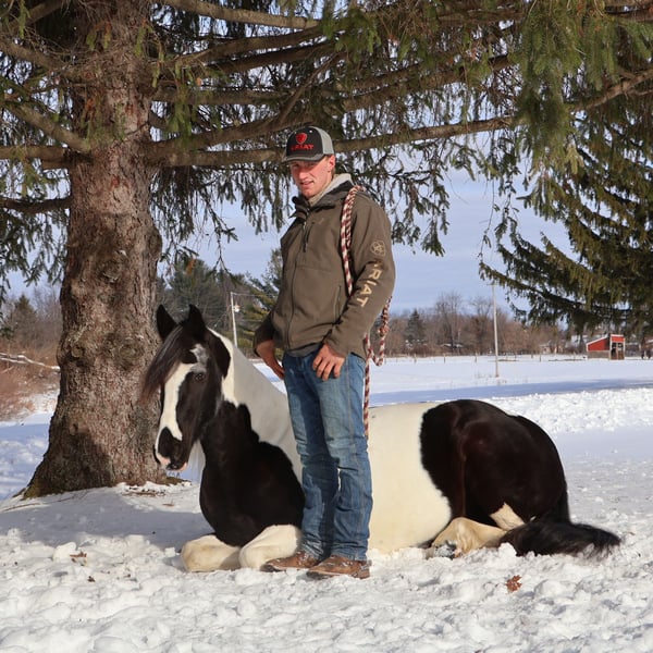 ♦️𝐍𝐄𝐖 𝐘𝐄𝐀𝐑'𝐒 𝑬𝒙𝒕𝒓𝒂𝒗𝒂𝒈𝒂𝒏𝒛𝒂♦️ Happening now thru MONDAY | JANUARY 12th - Available EXCLUSIVELY on HorseBid's website! For more details and to register visit: www.Horsebid.com CONSIGNOR CONTACT: Blackstone Stables 248-390-6831 LOCATION: Howell, MI BREED: Friesian Heritage Horse REGISTERED: Yes REGISTERED NAME: Hattie’s Moonlight Dream COLOR: Black and white paint HEIGHT: 15.1 AGE: 7 GENDER: Mare Haite's Moonlight Dream, or Dream as we call her at home nothing short of spectacular from her mind to her color, to her breeding there’s nothing she’s lacking. Dream is a 15.1hh stout made, friesian heritage horse. she is sired by the legendary Haite fan North Ster and out of a paint Haflinger cross mare. She is 7 years old. Dream has an incredible mane and tail and light feathering. She has gorgeous conformation. Not only is as stunning as a horse who walked right out of a fairy tale she is sensible. Dream will walk, trot and canter with ease. All of her gaits are as comfortable as floating on a cloud. She has had years of natural horsemanship training and will ride completely tackless at the walk, trot, canter and even over jumps. She moves off of your seat and leg effortlessly. She has been in the city, in traffic, in the woods and in water. She has been in the arena and the fields. This girl will go anywhere with any rider onboard. She goes English, Western and even bare back. She knows how to drive and loves it. Dream has all the bells and whistles when it comes to her trick training. She will sit, lay down, say yes and no and will rear up on command. She listens to her persons ques with the most attention and respect. Dream has been trained by the absolute best in the business. She has seen tarps, umbrellas, balls, bridges, inflatable dinosaurs and much more. You will be hard pressed to spook her. This mare has been on several hunter paces. She has also been used to round cattle. In the arena she jumps in beautiful form. She has been to schooling shows and used in lessons for kids as young as 5 years old. This is a unique find that would be an asset to anyone looking for a feathered horse that anyone can get along with anyone in any situation. Dream has been a very loved family member only having one owner since she was a baby. She is only being offered for sale to the best of homes as her owner has a few upcoming babies to bring along. Please watch her video, she speaks volumes for her self. Please call or text Ellesse Schwartz at 248-390-6831. Dream lives in Howell, MI 48855