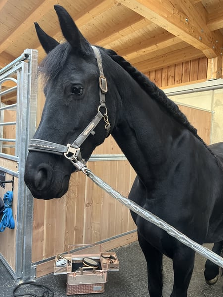 Geeske is very gentle under saddle and also performs excellently in harness. She has been backed and driven by Jelmer Chardon in the Netherlands. She has given birth to two wonderful foals, all very straightforward and in excellent health. She is a tall mare, always willing to participate in various activities, calm in handling, and very trusting. Please feel free to contact via WhatsApp or call at +49 151 214 050 24.