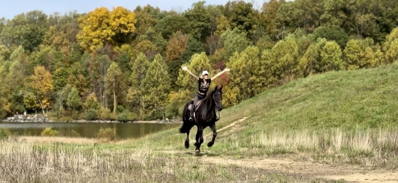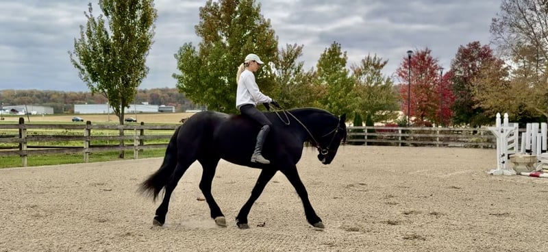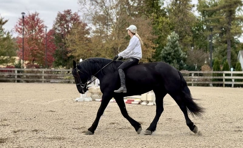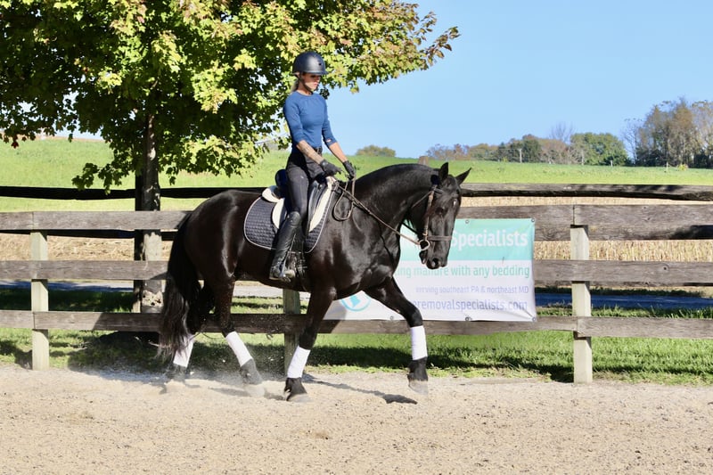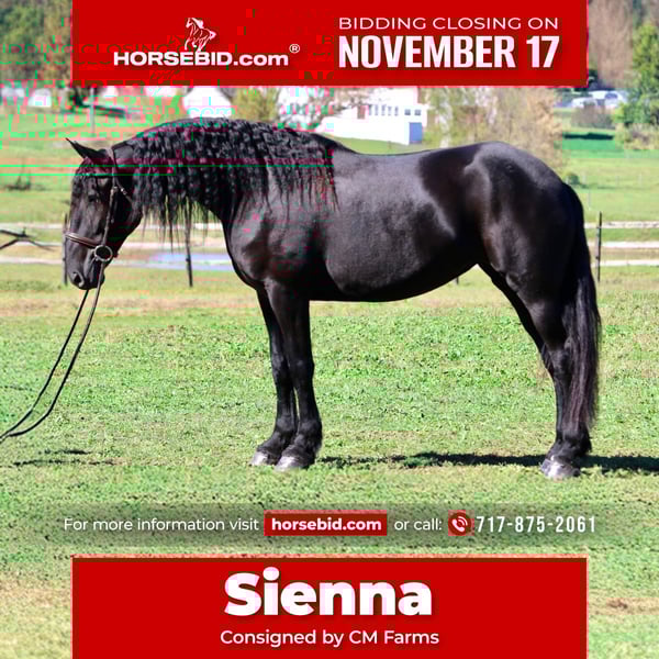 🎲𝓽𝓱𝓮 𝐑𝐈𝐃𝐄𝐑'𝐒 𝓒𝓱𝓸𝓲𝓬𝓮🎲 Happening now thru MONDAY | NOVEMBER 17th - Available EXCLUSIVELY on HorseBid's website! For more details and to register visit: www.Horsebid.com CONSIGNOR CONTACT: CM Farms 717-875-2061 LOCATION: Gap, PA BREED: Friesian/PercheronX REGISTERED: No REGISTERED NAME: Sienna COLOR: Black HEIGHT: 16.1-2 AGE: 7 GENDER: Mare Meet ✨Sienna✨ — aka the queen of the barn! 👑 This mare is truly breathtakingly beautiful. She’s a 7-year-old, 16.1–16.2hh, ¾ Friesian and ¼ Percheron cross mare. She has a long, flowing mane and tail, a beautiful neck, all the right curves, correct conformation, and striking beauty — and she knows it! She has just as good of a personality to match; she loves her people so much that she’ll come running in from the pasture when she sees you! She is truly a sweetheart in every way — and so talented at that. She rides English, Western, bareback, and drives! Sienna is the whole package — she can go any direction and loves to have a job. Sienna is the perfect horse for many disciplines. She’s fancy in the arena, and we could easily see her being a dressage queen with her talent, elegant movement, and sensible brain. She’s dropped jaws with her leg action — you’d think she’d be a lot of movement and suspension to ride; however, she’s one of the smoothest and most comfortable rides in the barn! “A comfortable Friesian?” — rare, I know, but she beats all the allegations as soon as you throw a leg over. We’ve ridden her bareback at the walk, trot, and canter — she’s that comfortable! She’s light on her feet, soft through the hand and leg, and easy to collect. This girl is incredibly smart, picks up new things fast, and retains information like no other. She’s smart as a whip, with great work ethic, forward thinking (without ever taking off), and has all the potential to get you to the top. Her trot and canter are adjustable, she does circles with grace and balance, and even has a sliding stop if you ask! She neck reins and direct reins, sidepasses, leg yields, and extends beautifully. This is a mare that loves to work, loves having a job, and is happy to put in the effort six days a week. Let her sit awhile and she’ll come out the same — maybe a little miffed you didn’t give her more attention — but always steady and reliable. She’s every AA and trainer’s dream, and one we always look forward to pulling out for a ride. She’s fun in every way and safe for a variety of riders. On the trail, Sienna has plenty of miles and always walks like she’s on a red carpet. 💃 She’s sure to get noticed with her happy ears, precious demeanor, and the sparkle in her eyes. She enjoys life and would love someone who’s as carefree as she is! She’s a powerhouse — one that can’t be rattled even by the spookiest of things. This lady is 100% traffic and equipment safe, bike and hiker proof. She’s been desensitized to the tarp, flag, smoke, and fire, and even brings a competitive game when it comes to the ball! She’s just as wonderful on a simple trail ride, with unflappable confidence that will carry you through (or over!) anything. She’s ridden right into busy towns, as well as quiet wooded trails and open fields. She’ll even let you sit the whiny kids on her back — and she’ll make them smile every time. Sienna has presence without being “mare-ish.” She loves her halfwit gelding colleagues and doesn’t get upset when they’re rambunctious or in her space. She minds her business in turnout and gets along with anyone and everyone. We can’t say enough good things about this mare. She even has a lovely jump! Whether you’re in the ring popping over crossrails and simple combinations, or going cross-country over solid fences — she’s honest, has cute form, perfect knees, and always a happy attitude to boot. She has tons of potential when it comes to jumping and just keeps getting better the more she learns. She’s so rewarding to bring along because you can truly see your work paying off — and she’ll make you proud! She’s been on hunter paces and schooled cross-country with us, and we could easily see her thriving in the hunt field. She doesn’t get hot or silly; you can put her anywhere in the group, and she stays calm, cool, and collected — you can even jump her around and walk off on a loose rein right after. She’s incredible in every way, she’s in her prime, and she has so much life to give. If you couldn’t tell by this lengthy and heartfelt write-up — we are incredibly fond of this mare. We want sweet Sienna to go to the right home, one that will appreciate and love her just as much as we have. She’s gorgeous, in your pocket, safe, and there’s not one single thing wrong with her. We see so much potential in this mare — whether you want to hit the show ring or have a best friend to adventure with — she is that girl. UTD on shots, farrier, dentist, deworming, and coggins- PPEs welcome!